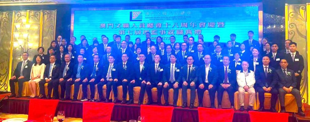 澳門文職人員總會於五月七日假凱旋軒舉行「十八周年暨第七屆理監事就職典禮」。中聯辦社工部代表蔡曉輝、教青局代表林文達和工聯總會理事長李從正等出席。文總第七屆理監事在理事長沈日光帶領以及李從正監誓下宣誓就職。