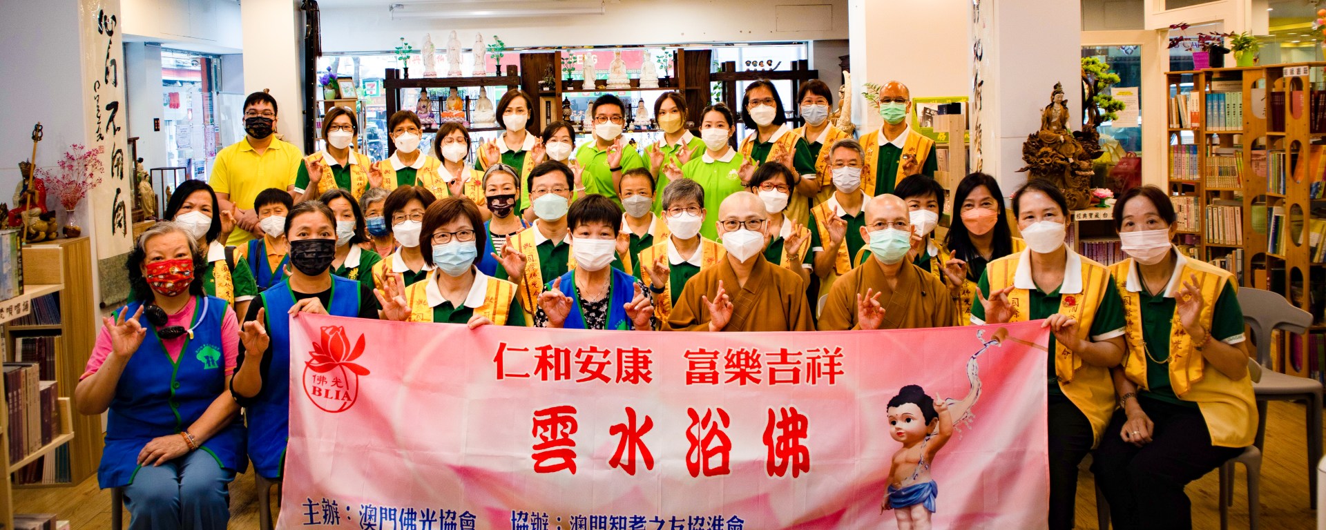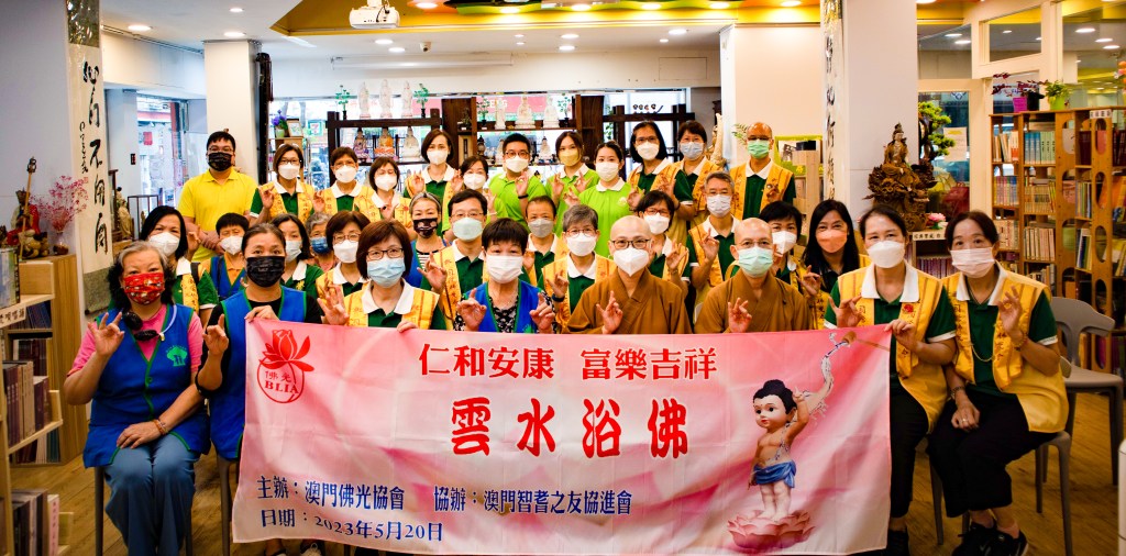 弘揚佛光山開山祖師星雲大師人間佛教的理念,澳門佛光協會於2023年5月20日舉辦「仁和安康‧富樂吉祥‧雲端浴佛」活動,再度與澳門智耆之友協進會迎請太子佛到17個雙老家庭,讓浴佛的清淨祥和流入社區, 第三年舉辦的雲水浴佛活動,更首次把浴佛淨心的正能量帶入盈康護老院及鏡湖醫院康寧中心,展現佛教的平等精神,大眾同霑佛誕節的法喜。