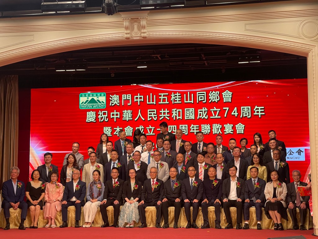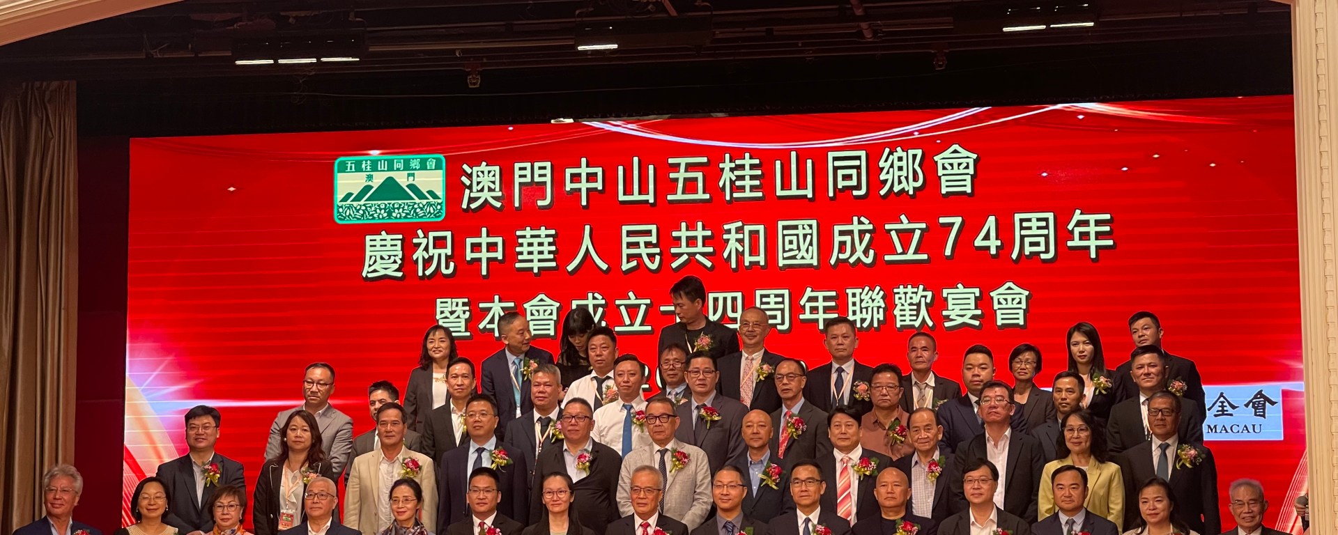 澳門中山五桂山同鄉會六月廿二日晚上八時假萬豪軒酒家舉行聯歡宴,慶祝中華人民共和國成立七十四周年暨該會成立十四周年。出席嘉賓包括中聯辦協調部一級調研員尹小蘭,中山市政協三級調研員龍敏、市委統戰部四級調研員黃文偉、市僑聯四級調研員潘小璐,五桂山街道黨工委委員李淵清,全國政協常委何潤生,全國政協澳區委員梁少培、陳明金,議員鄭安庭、梁鴻細,該會會長楊玉初、常務副會長廖國洲。