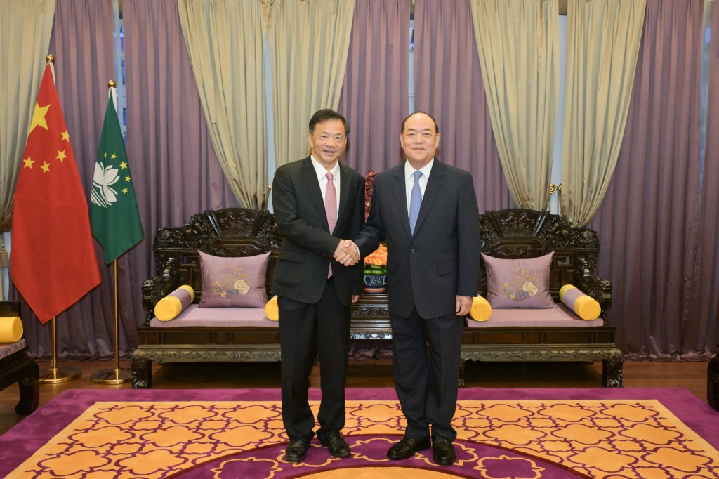 行政長官賀一誠與中宣部副部長、中央廣播電視總台台長慎海雄會面,雙方就特區政府與中央廣播電視總台持續深化合作、講好澳門「一國兩制」故事、促進多元產業發展融入國家發展大局等議題交流意見。