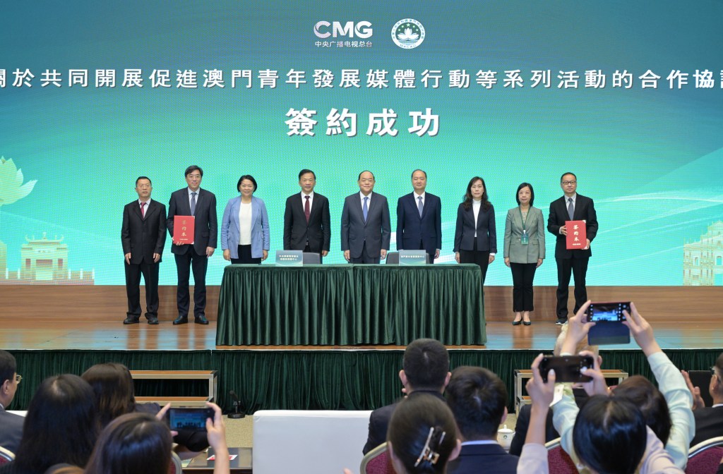 儀式上,中央廣播電視總台編務會議成員范昀和澳門青年發展服務中心總幹事黃永曦代表雙方簽署了《關於共同開展促進澳門青年發展媒體行動等系列活動的合作協議》。根據協議,中央廣播電視總台視聽新媒體中心和澳門青年發展服務中心將充分利用各自資源優勢,共同做好「青春知行」澳門青年職業發展關切計劃、就業創業能力培訓計劃、內地高新產業研學實踐計劃等系列媒體活動,助力澳門青年深度觀察、親身感受偉大祖國的發展變化,增進澳門與內地青年的雙向交流。