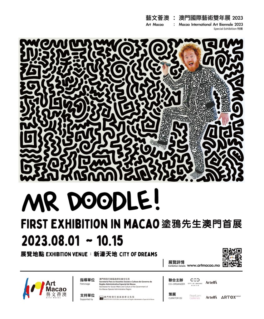 新濠博亞娛樂有限公司特展「塗鴉先生澳門首展」,是知名藝術家「塗鴉先生Mr Doodle」在澳門的首次個展,藝術家更會於九月蒞澳進行一次現場創作,帶來多件全球首發作品,展現其獨特的即興創作才華。