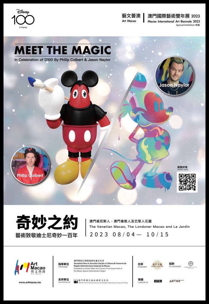 金沙中國有限公司特展「奇妙之約──藝術致敬迪士尼奇妙一百年」,邀請Jason Naylor 及Philip Colbert兩位備受時尚界追捧的國際藝術家,首度展出他們以迪士尼百年慶典為主題、米奇老鼠為藍本創作的大型藝術品,以及他們的多件經典作品,帶來色彩繽紛的藝術樂園體驗。