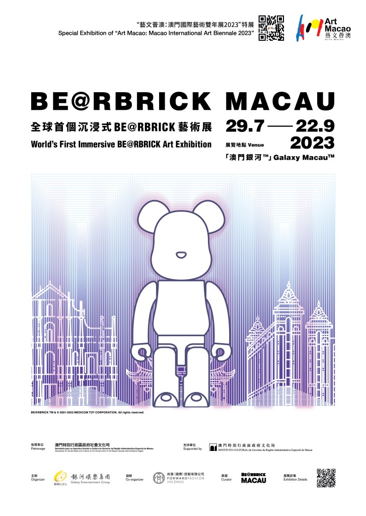 銀河娛樂集團特展「BE@RBRICK MACAU 全球首個沉浸式BE@RBRICK 藝術展」,由日本知名藝術家Tatsuhiko 「Ryu」 Akashi帶領十多位國際及澳門藝術家、設計師為澳門呈獻一個規模龐大的BE@RBRICK盛宴,更結合數碼藝術的應用,帶來別具特色的沉浸式互動體驗。
