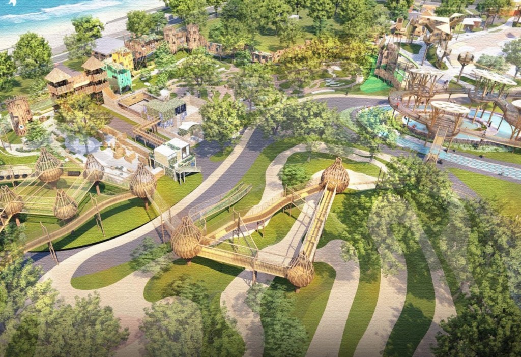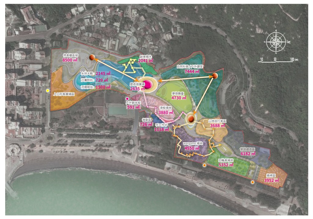 由於體驗營依山傍海,屬黑沙片區的集水區,建設前期需構建基礎設施,包括:建設地下渠網、排水等一系列防洪排澇設施,以保障日後營區不受水澇影響;重建營區的照明、供水等設施;以海綿城市的概念構建營區基建及生態建築,通過海綿設施的過濾、截留功能降低雨水排水中的污染物含量,不對周邊水系水質造成影響。同時,還將建設多層停車場、活動中心、餐飲空間等一系列配套設施。