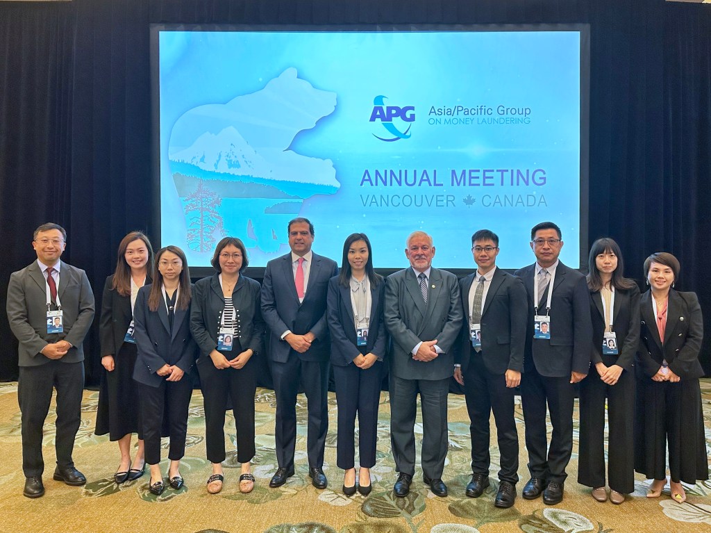澳門特區作為「亞太反洗錢組織」(Asia/Pacific Group on Money Laundering,APG)的會員,金融情報辦公室每年協調跨部門反清洗黑錢及反恐怖融資工作小組成員以「中國澳門」的會員名義組織代表團參加APG一年一度的會議。是次年會於7月9至14日期間在加拿大舉行。