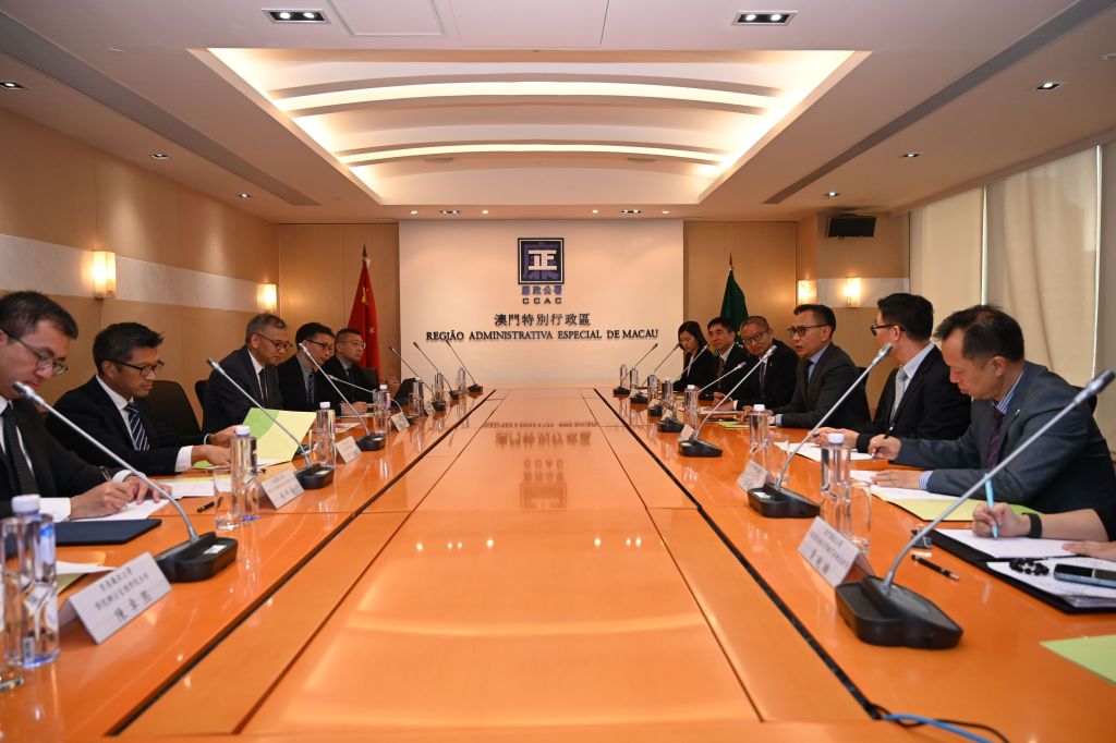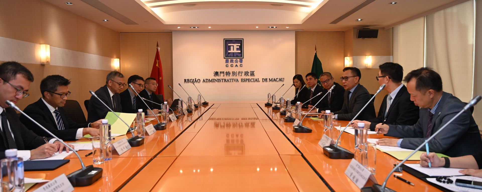 參加會面還有香港廉署執行處助理處長黃偉傑和防止貪污處助理處長張展杰,以及澳門廉政專員辦公室主任陳彥照及反貪局人員。