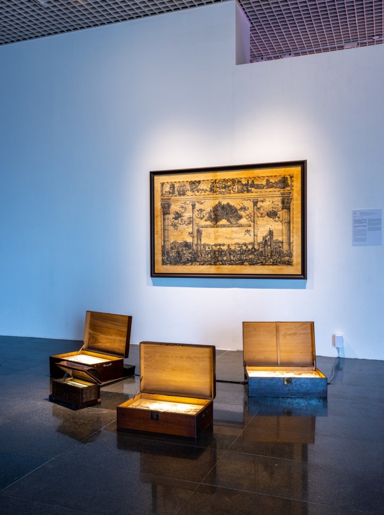 參展作品以「科學和信仰在澳門的相遇」作為切入點,並以獨特的表達方式和深度,探索科學和信仰之間的相互作用,呈現出多樣的面貌與思考,充分展現澳門本地藝術的風貌與多元性。君士坦丁的《南灣 I》《南灣 II》展示了澳門16世紀及17世紀中西交流頻密的商貿盛況;吳衛鳴《理性的生成》借神話中理性的誕生,質疑現今過度依賴理性科學和技術所帶來的風險;梁藍波《冰‧火》以水墨和影像的交疊、冰與火的交融,思考當前的氣候變化問題;陳顯耀以攝影裝置《非常態結構》探索一種繁複的生態結構,使之成為城市命運的隱喻;黎雪穎《願景之泉》以不同角度拓展對人類許願的詮釋;霍凱盛《文藝復興》繪畫「地圓說」與「地平說」地圖,展示科學和信仰如何共同搭建起現今文明格局的圖景。