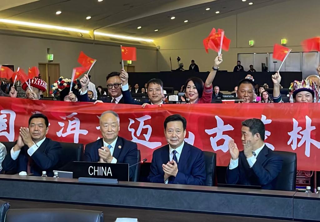 此外,中國今屆唯一申報項目「普洱景邁山古茶林文化景觀」,作為一處可追溯至公元10世紀、不斷演進並由古茶林、茶園、森林和傳統村落構成的,反映中國傳統茶葉種植及布朗族和傣族世代土地利用實踐等重要價值的文化景觀,在北京時間9月17日晚上20時33分順利通過審議成功列入《世界遺產名錄》,成為我國第57項世界遺產,文化局代表於大會現場見證申遺成功並上前表示祝賀。