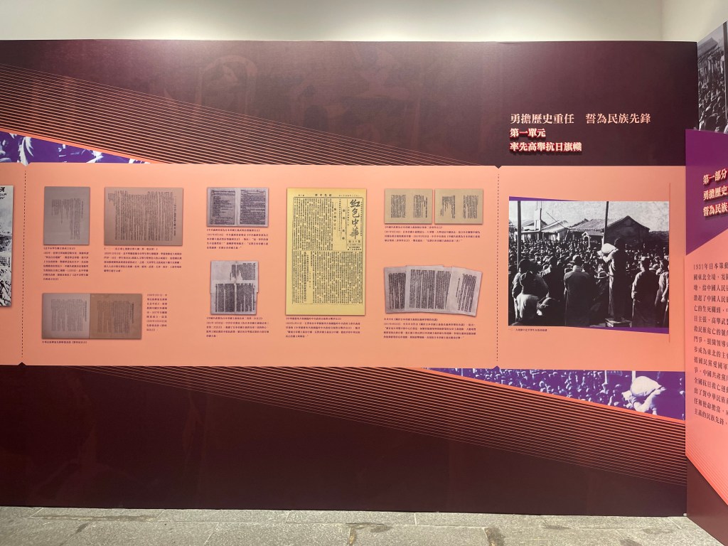 據介紹,展覽內容共分5個部分:「第一部分:勇擔歷史重任誓為民族先鋒」﹔「第二部分:秉持民族大義堅持團結抗戰」﹔「第三部分:制定勝敵方略引領抗戰方向」﹔「第四部分:開辟敵后戰場開展人民戰爭」﹔「第五部分:南陲守土澳門人的抗戰」。