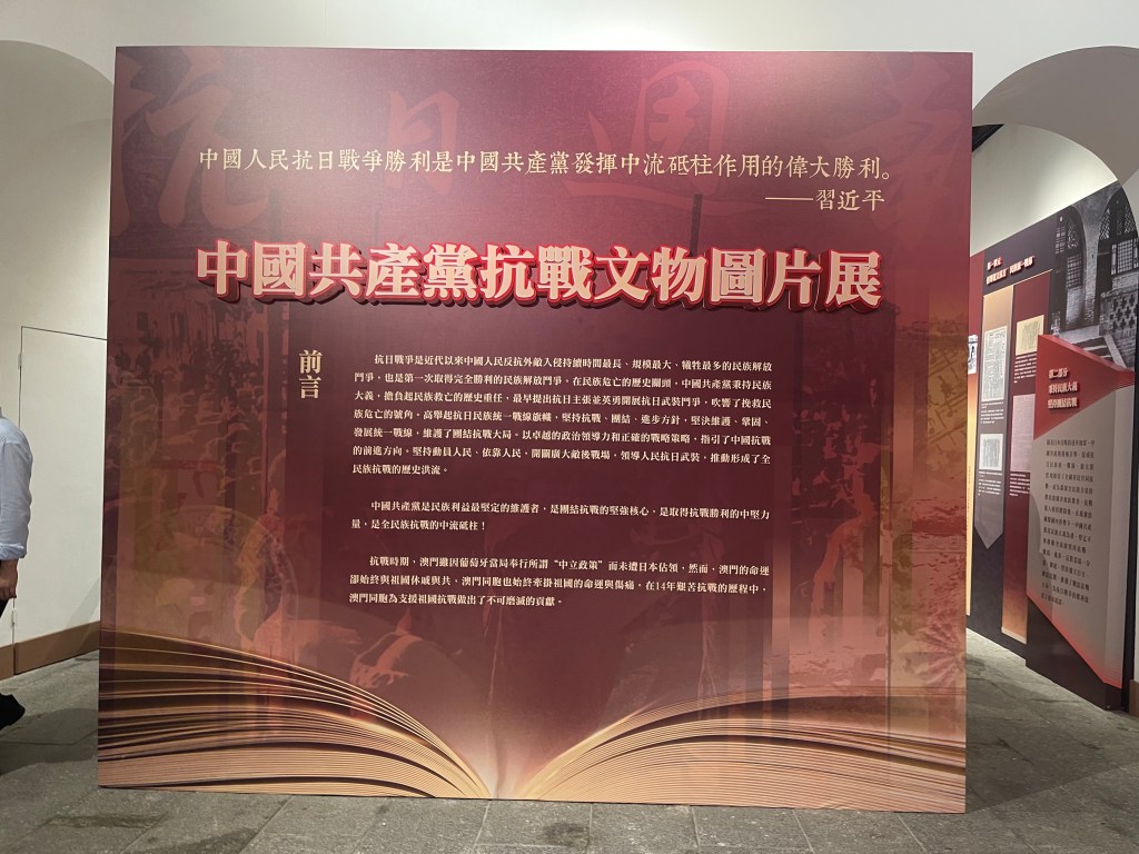 為紀念中國人民抗日戰爭暨世界反法西斯戰爭勝利78周年,使澳門同胞進一步了解抗日戰爭歷史及其重要意義,《中國共產黨抗戰文物圖片展》開幕式9月3日在澳門市政署大樓畫廊舉行。