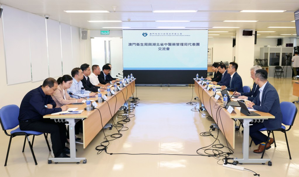 衛生局羅奕龍局長、鄭成業副局長、社區醫療衛生廳謝師輝代廳長、世界衛生組織傳統醫藥合作中心(澳門)莫蕙主任、研究策劃處黃靜波處長等,日前與湖北省衛生健康委黨組成員、副主任、省中醫藥管理局鄧小川局長率領的代表團一行8人進行交流,雙方就鄂澳兩地醫療領域合作進行了深入討論。