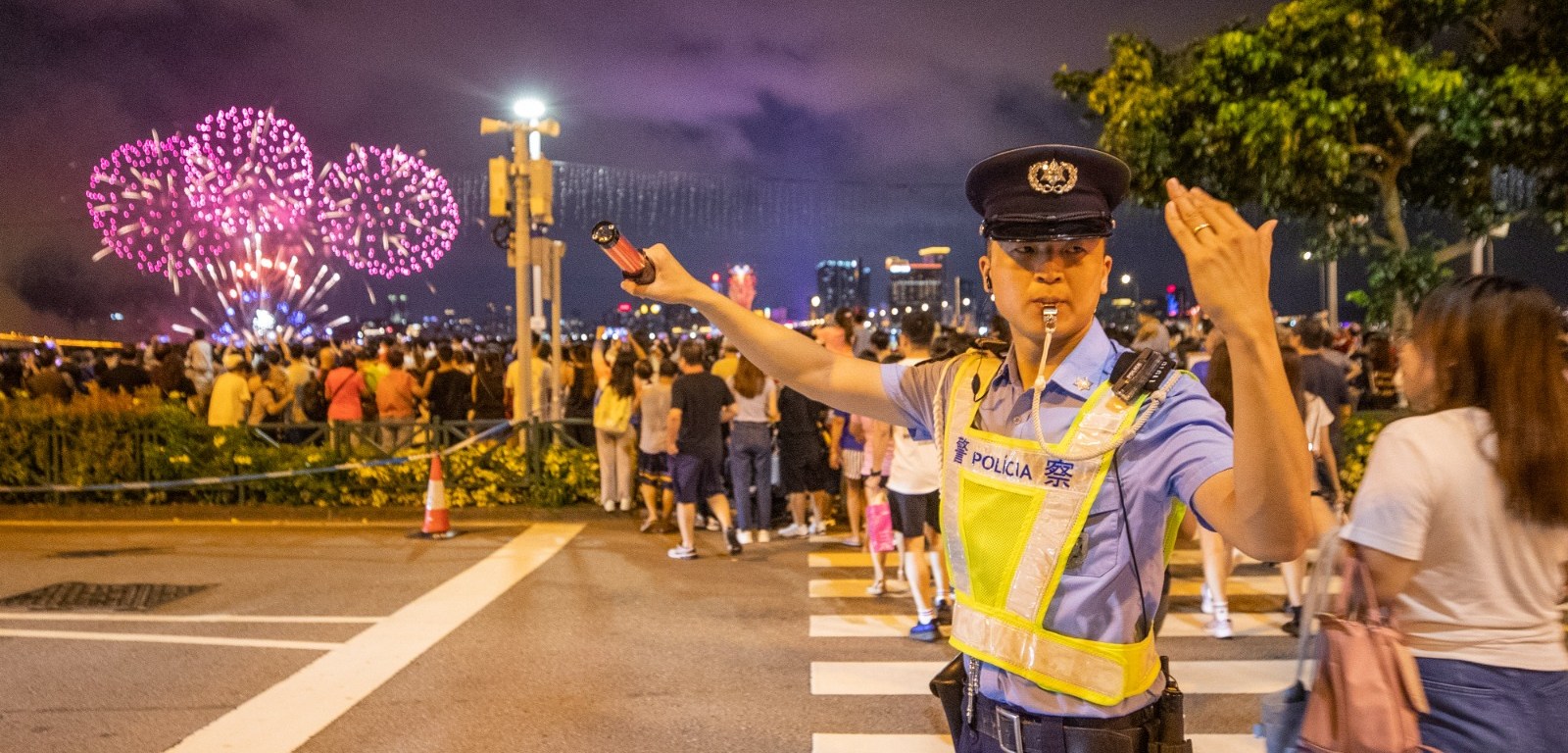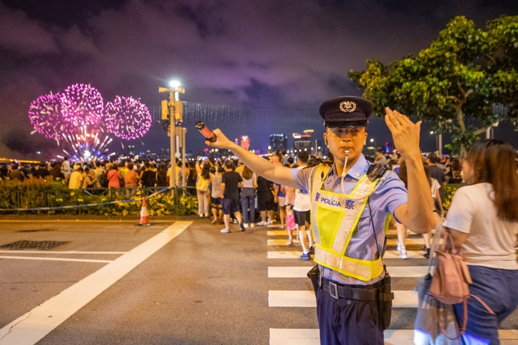 於10月1日國際煙花比賽匯演當晚,治安警察局加派人員於各個觀賞煙花的地點維持秩序,疏導人流和車流,讓市民及旅客安心歡度節日。