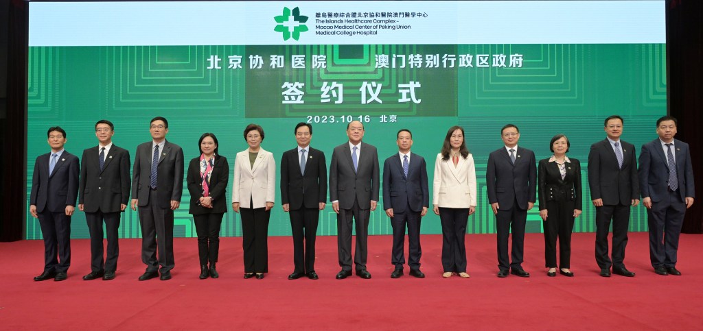 2021年,澳門特區政府為切實增進澳門居民健康福祉,提高澳門疑難重症和專科醫療服務供給能力,在國家衛生健康委員會等的支持下邀請內地頂尖醫療專業水平的北京協和醫院作為合作夥伴,共同運營和管理離島醫療綜合體北京協和醫院澳門醫學中心。2022年8月,澳門特區行政長官賀一誠批示設立「北京協和醫院澳門醫學中心/澳門醫院策略發展委員會」;12月,澳門協和醫院主體工程竣工。今年2月,北京協和醫院與澳門特區政府社會文化司簽署長期合作協議;10月1日,《離島醫療綜合體北京協和醫院澳門醫學中心法律制度》、《離島醫療綜合體北京協和醫院澳門醫學中心章程》正式生效。