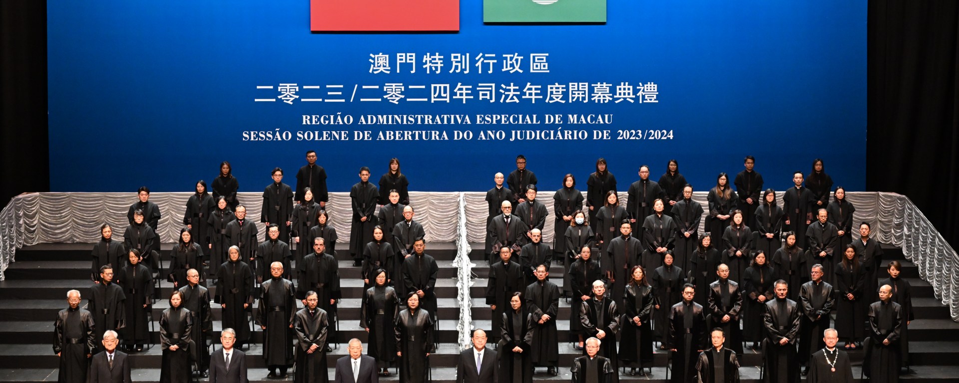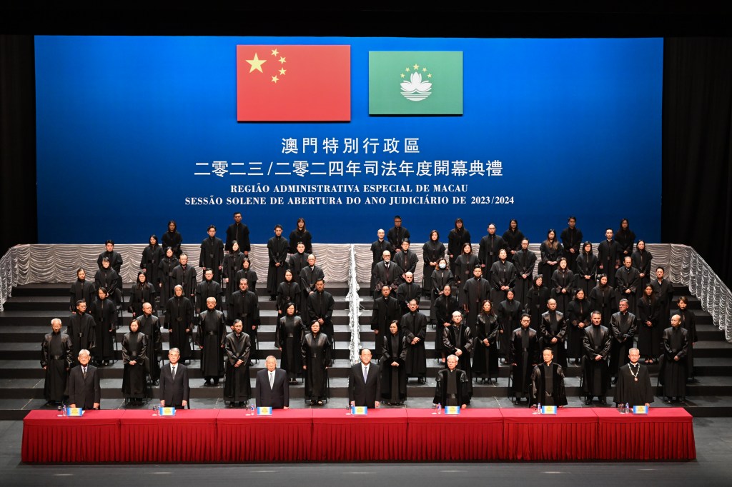 澳門特別行政區2023/2024年司法年度開幕典禮日前在文化中心舉行,由行政長官賀一誠、立法會代主席崔世昌、終審法院院長岑浩輝、行政法務司司長張永春、檢察長葉迅生、推薦法官的獨立委員會主席劉焯華、澳門律師公會理事會主席黃顯輝主禮。