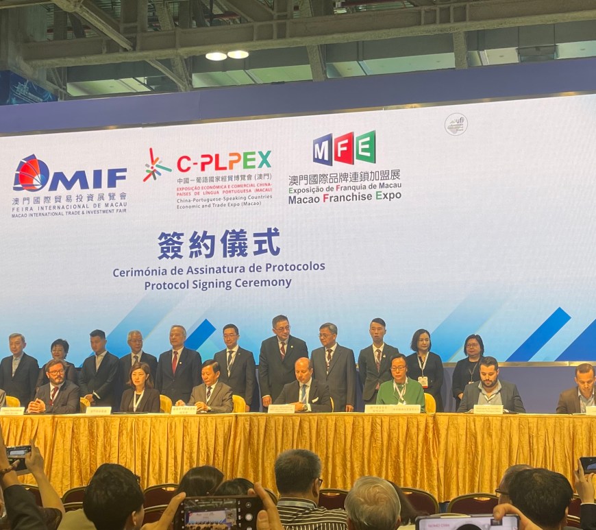 首屆中國——葡語國家經貿博覽會(澳門)、第28屆澳門國際貿易投資展覽會及澳門國際品牌連鎖加盟展2023,於10月19至22日在澳門威尼斯人金光會展同期同場舉行。今屆三展圍繞中葡平台、「1+4」產業多元發展、以展招商及區域合作等亮點,發揮「產業+會展」動能支持重點產業發展,助力構建「雙循環」新發展格局。簡要地介紹一下,三展聯動模式今年續辦至第四屆,澳門貿易投資促進局為更好發揮疊加效應,持續優化線上線下布局。展場首跨四館,面積達37,000平方米,展位逾2,000個,分別較去年增加26%及11%。截至10月15日,三展線下企業逾1,200家(同比增14%),葡語國家參展商逾260家,其中巴西有76家,其參展商、品牌和代表團數目均是歷屆最多。今年繼續助力企業聯通國際,發揮澳門內引外聯的平台作用,吸引來自15個國家及地區的企業線下參展,涉及大健康、高新技術、現代金融、文化創意、綜合旅遊、商貿零售、食品製造、跨境電商、節能環保等行業。