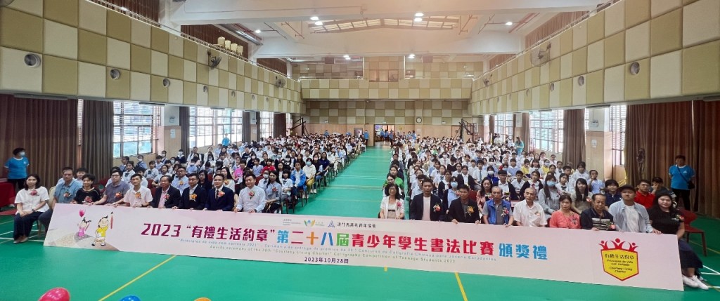 由市政署、澳門馬黑祐居民聯誼會青年協會聯合主辦2023「有禮生活約章」第二十八屆青少年學生書法比賽頒獎禮,十月廿八日在街總社區服務大樓六樓禮堂舉行,中聯辦社工部處長李宇鵬、市政署文康及公民教育廳公民教育處處長林微笑、澳門特區政府行政委員兼街坊總會理事長陳家良、立法議員兼街總副理事長梁鴻細、立法議員兼群力智庫副理事長顏奕恆等嘉賓出席主禮。負責人希望通過活動,培養青少年愛國愛澳情懷,進一步宣傳、推廣中華文化,以及將中國傳統書法發揚光大。
