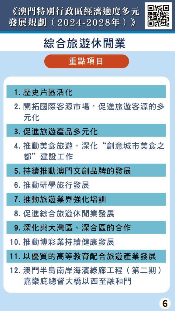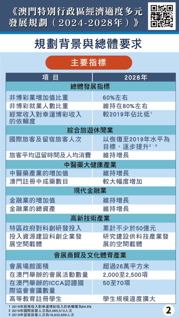 澳門特別行政區政府早前正式公佈《澳門特別行政區經濟適度多元發展規劃(2024-2028年)》。