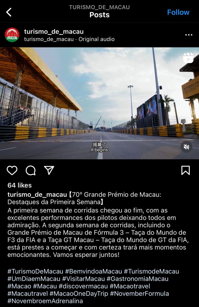 為配合第70屆澳門格蘭披治大賽車的舉辦,旅遊局多措並舉宣傳此項國際體壇盛事,轄下的澳門大賽車博物館更在賽事期間歡迎多位世界享負盛名的賽車手到訪,聯動展示澳門「旅遊+體育」的魅力。