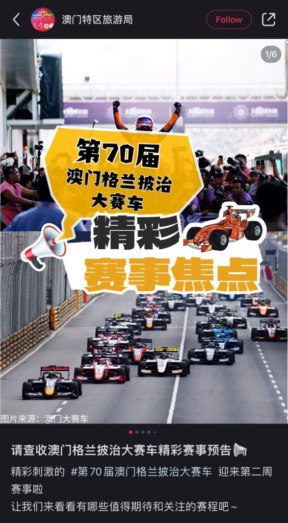 為配合賽事舉行,旅遊局鋪開一連串宣傳攻勢,覆蓋不同客源市場,包括在官方微信小程序互動區推出互動遊戲,並在微信、微博、小紅書、抖音、Tiktok、Facebook、Instagram及Line等各社交媒體持續活躍推廣,從線上引流用戶至線下參與,增加澳門作為旅遊目的地的曝光率和吸引力,提升國際旅遊形象。