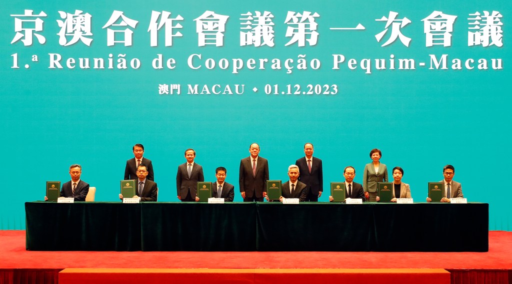 京澳合作會議第一次會議日前在中國與葡語國家商貿合作服務平台綜合體舉行,行政長官賀一誠和北京市委副書記、市長殷勇分別率領兩地政府代表團出席會議。雙方認為,京澳多年來在多個領域的合作取得了豐碩成果,京澳合作會議機制的正式建立,更為兩地搭建了全面、務實的綜合性交流合作平台,開創京澳合作的新局面,共同推動兩地經濟社會繁榮發展,不斷增進兩地人民福祉,為以中國式現代化全面推進中華民族偉大復興作出積極貢獻。