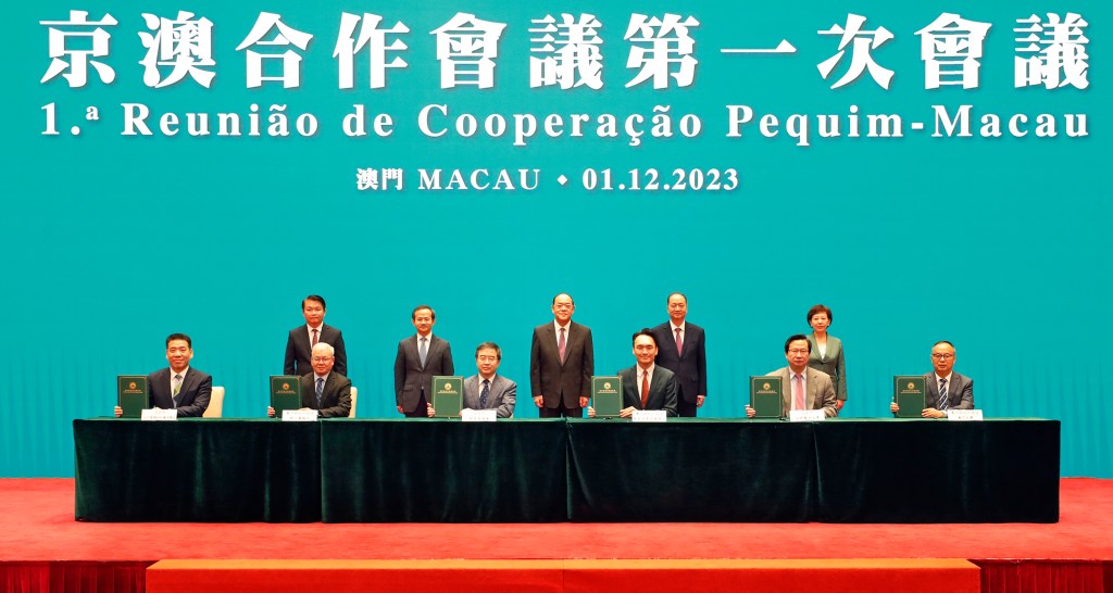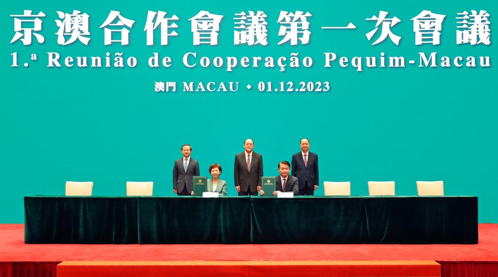 會議後,行政長官、殷勇市長等共同見證了《京澳合作會議第一次會議備忘錄》、《深化京澳科技創新合作備忘錄》、《中國國際貿易促進委員會北京市分會 澳門貿易投資促進局戰略合作框架協議》、《北京市文化和旅遊局與澳門特別行政區政府文化局、旅遊局開展文旅交流合作備忘錄》、《北京市教育委員會與澳門特別行政區政府教育及青年發展局合作協議》、《京澳職業培訓交流合作協議》及《教育和科學合作備忘錄》的簽署儀式。