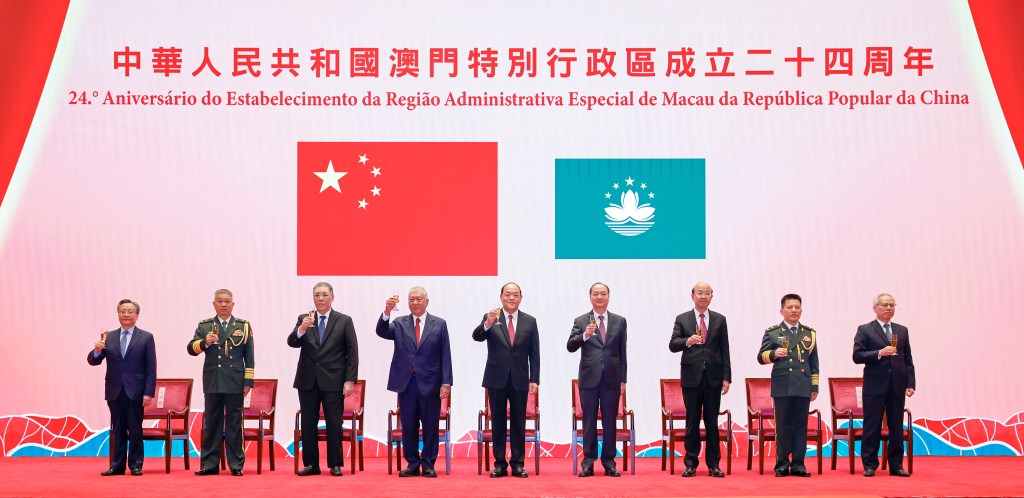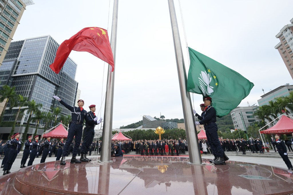 行政長官、中央駐澳官員、解放軍駐澳部隊軍官、特區立法和司法機關負責人、政府主要官員及各界人士等約520名嘉賓出席了上午8時在金蓮花廣場舉行的慶祝澳門特區成立24周年升旗儀式。