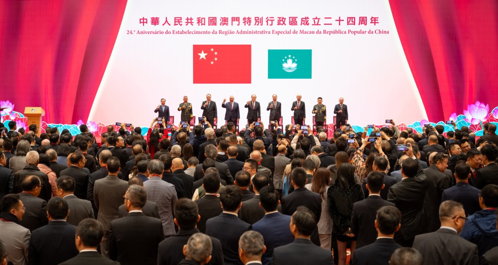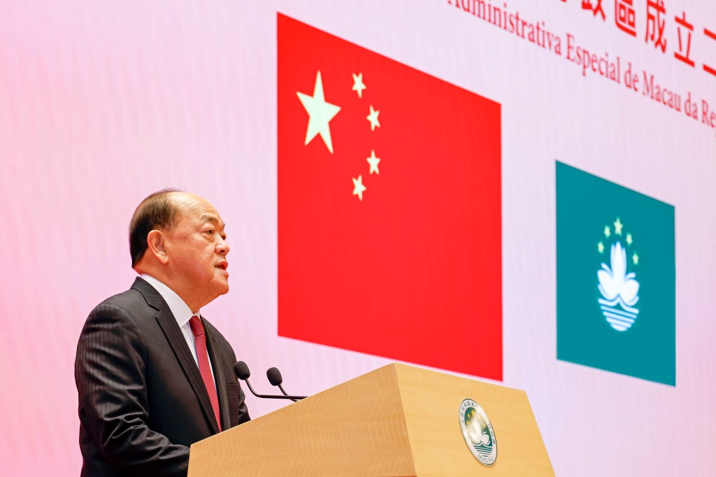 行政長官在致辭時表示,澳門回歸祖國24年來,與祖國齊奮鬥、同發展、共繁榮,命運始終緊密相連,譜寫了具有澳門特色「一國兩制」成功實踐的華彩篇章。實踐證明,偉大祖國永遠是澳門戰勝一切風險挑戰、保持長治久安的堅強後盾。