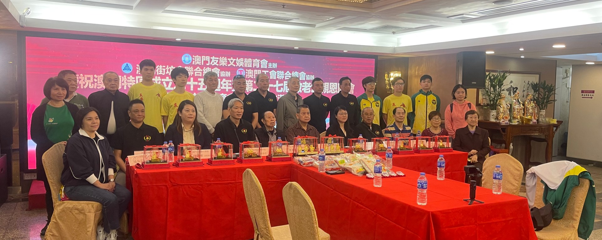 友樂文娛體育會主辦,街總及工聯協辦「慶祝澳門特區成立二十五周年暨第二十七屆敬老頌親恩晚會」,於一月二十三及二十四日兩晚,假黃金閣豪食府共筵開八十多席招待逾千名長者。主辦單位盼通過活動,喚起社會重視長者各方面需要,讓他們在關愛中度過晚年生活。