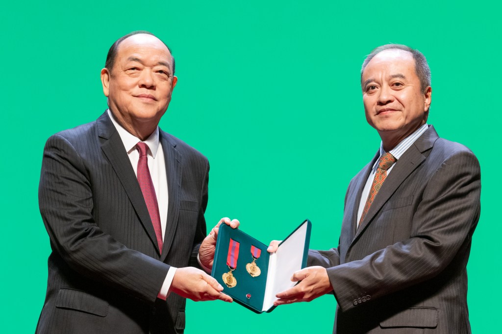 「中華人民共和國澳門特別行政區2023年度勳章、獎章和獎狀頒授典禮」於1月19日下午於文化中心舉行,由行政長官賀一誠主持。