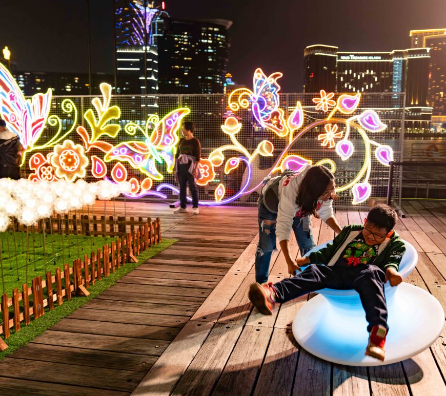 「2023幻彩耀濠江」在去年12月2日至今年2月25日舉行,以「璀璨遊樂場」為主題,覆蓋澳門半島、氹仔及路環7個區份合共34個地點,送上多個燈光裝置、互動裝置及光雕表演,帶領公眾遊歷繽紛多彩的「遊樂場」。活動更設有紀念品換領、幸運大抽奬和線上遊戲等配套項目,結合線上線下廣泛宣傳,提升居民和旅客的參與度。