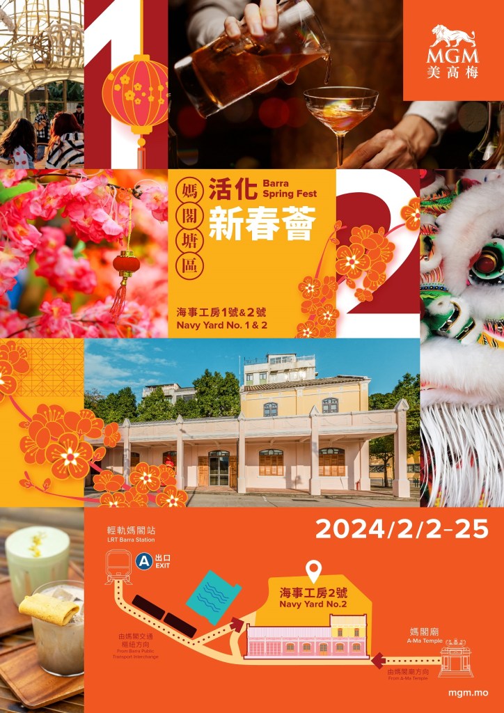 美高梅將於2月2日至25日期間的特定時段,在媽閣塘片區舉行一系列精彩新春活動。包括設置賀年花卉攤位,同場設有「花藝工作坊」讓參加者發揮創意親手製作年花,多個本地音樂單位亦將於周末及農曆新年公眾假期送上多元化的音樂表演,向市民旅客傳遞祝褔。同時,海事工房2號將化身為「日啡夜酌小館」,分別在白天和夜晚提供特調咖啡及茗茶特調鷄尾酒,更邀請到本地品牌進駐,於美食攤位帶來杏仁餅、沙甸魚、龍鬚糖等特色小食,現場還有打卡互動遊樂項目、財神派送新春小驚喜等豐富活動。