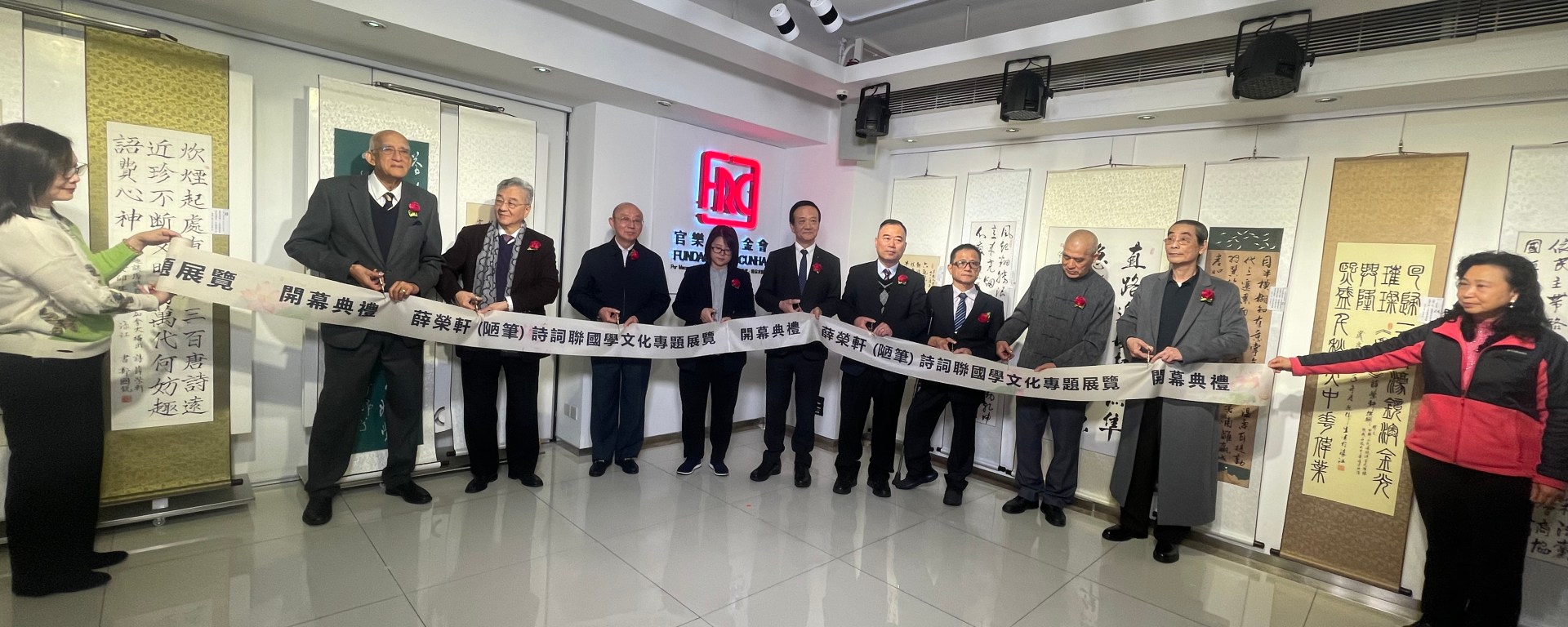 澳區全國人大代表劉藝良、議員宋碧琪、教青局學生廳長陳旭偉、澳門日報社長陸波、菜農子弟學校校長王國英、澳門智慧人文勵政會會長吳在權、澳門書法院院長歐耀南、官樂怡基金會主席官樂怡及二龍喉詩友會會長任風麈主持開幕式,眾多嘉賓及文化愛好者出席。