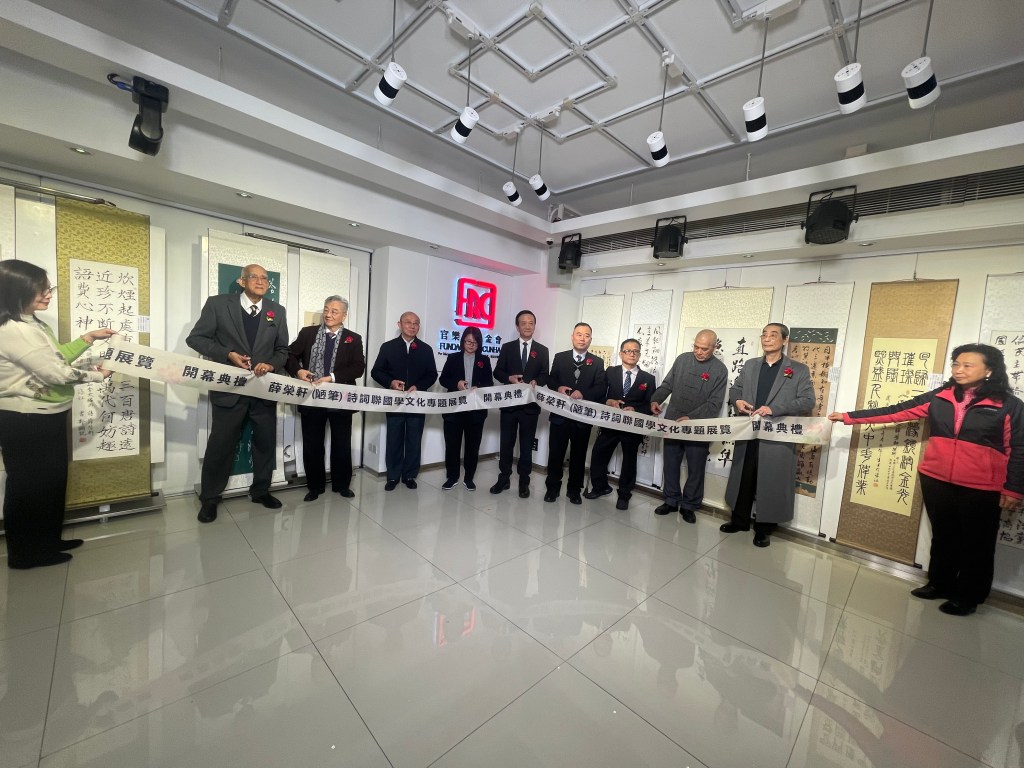 由二龍喉詩友會主辦的「薛榮軒(陋筆)詩詞聯國學文化」專題展,日前於官樂怡基金會畫廊開幕,展出該會理事長薛榮軒約四十多首詩詞作品的書法作品。