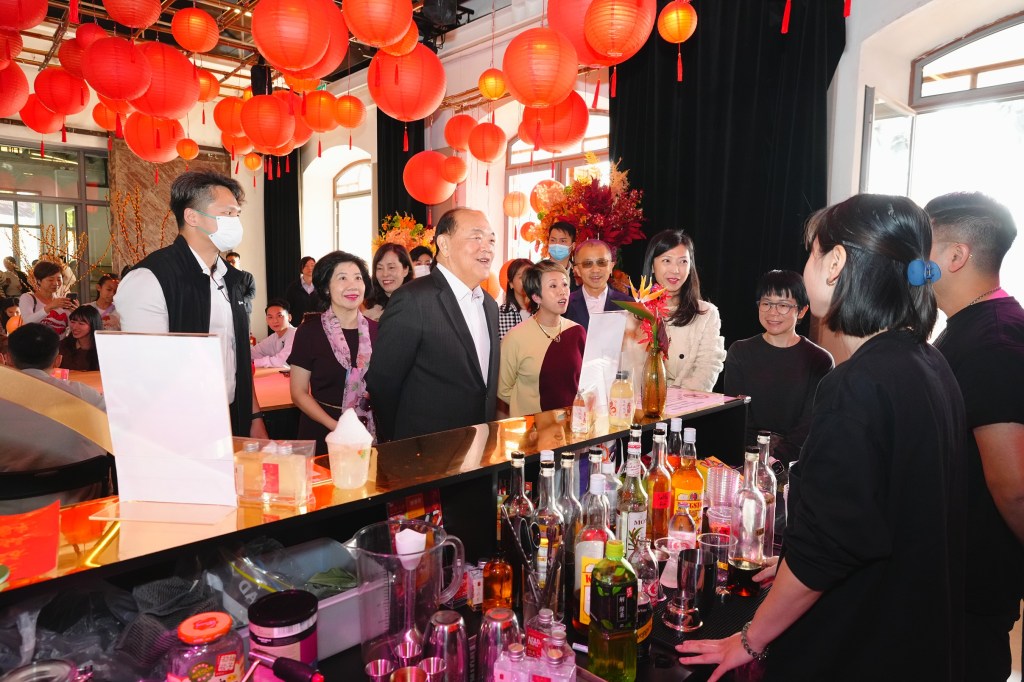 行政長官首先到訪大炮台花園,參觀新濠博亞舉行的「龍重登場大炮台」活動,並瞭解現場餐飲攤檔的銷情,以及欣賞音樂表演,感受熱鬧的節慶氛圍。其後,行政長官前往媽閣塘片區,參觀由文化局及美高梅共同舉辦的《媽閣塘畔,逸光浮影》百年變遷及藝術作品聯展,並與美高梅媽閣塘「活化新春薈」現場的青年攤主交流活動舉辦情況,關心青年發展。
