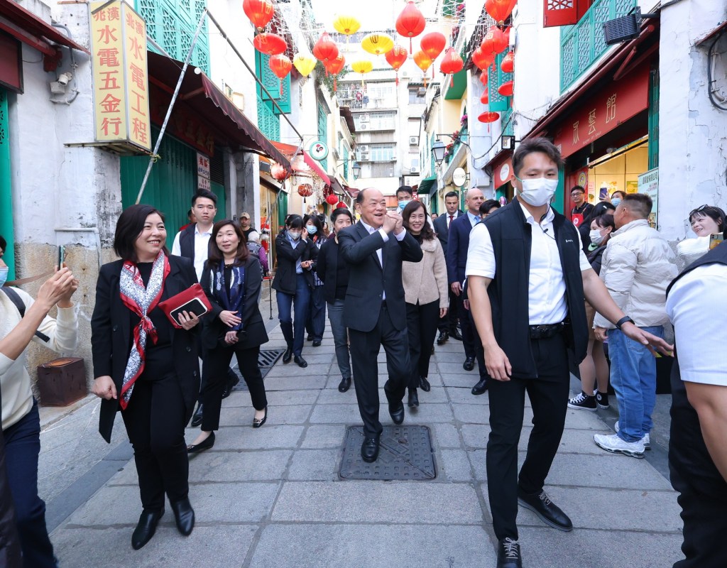 參觀各大片區期間,行政長官向沿途居民、旅客送上新春祝福,又與居民合照留念。陪同參觀的還有社會文化司司長歐陽瑜、文化局局長梁惠敏、社會文化司司長辦公室顧問羅灝芝等。
