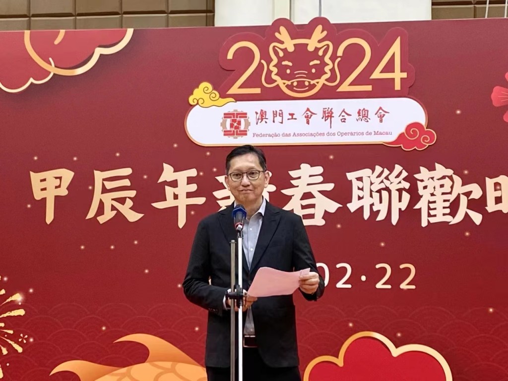 他又稱,今年是新中國成立七十五周年、特區政府成立二十五周年,亦是工聯總會愛國工運事業邁向七十五周年的重要之年,喜事大事紛至踏來。工聯總會定會以龍騰虎躍的干勁闖勁,全面貫徹二十大精神,堅定落實「愛國者治澳」的原則,全力支持特區政府依法施政,與社會各界攜手辦好一系列重大慶祝活動,營造良好社會氛圍。著力健全職工及社會服務體系,協助居民把握產業結構優化升級的機遇,促進更充分更高質量就業,配合落實經濟適度多元規劃。加快完善在大灣區和合作區的服務佈局,更好助力澳門居民融入國家發展大局,為推進具澳門特色的「一國兩制」成功實踐行穩致遠作出新貢獻。