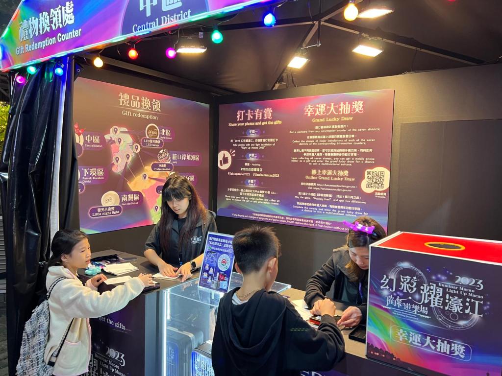 旅遊局結合線上線下渠道,廣泛宣傳此跨年品牌活動,同步設多元配套項目送出獎品,以不同方式帶領公眾遊歷繽紛多彩的「遊樂場」,進一步提升居民和旅客的參與度。2023年12月2日至2024年2月25日期間,旅遊局透過本地電信營運商提供的移動數據,統計「2023幻彩耀濠江」舉辦期間到訪裝置及光雕表演所在7個區分的人次數據,活動區域內合共錄得778萬人次到訪。此外,活動期間於現場送出近4萬份紀念品、約1千5百人次集齊7區蓋印參加幸運大抽獎、超過1萬人次參與「尋覓遊樂場」線上遊戲、微信小程序「2023幻彩耀濠江」互動遊戲累計獲得接近52萬人次參與,超過5萬4千人次參與抽獎。