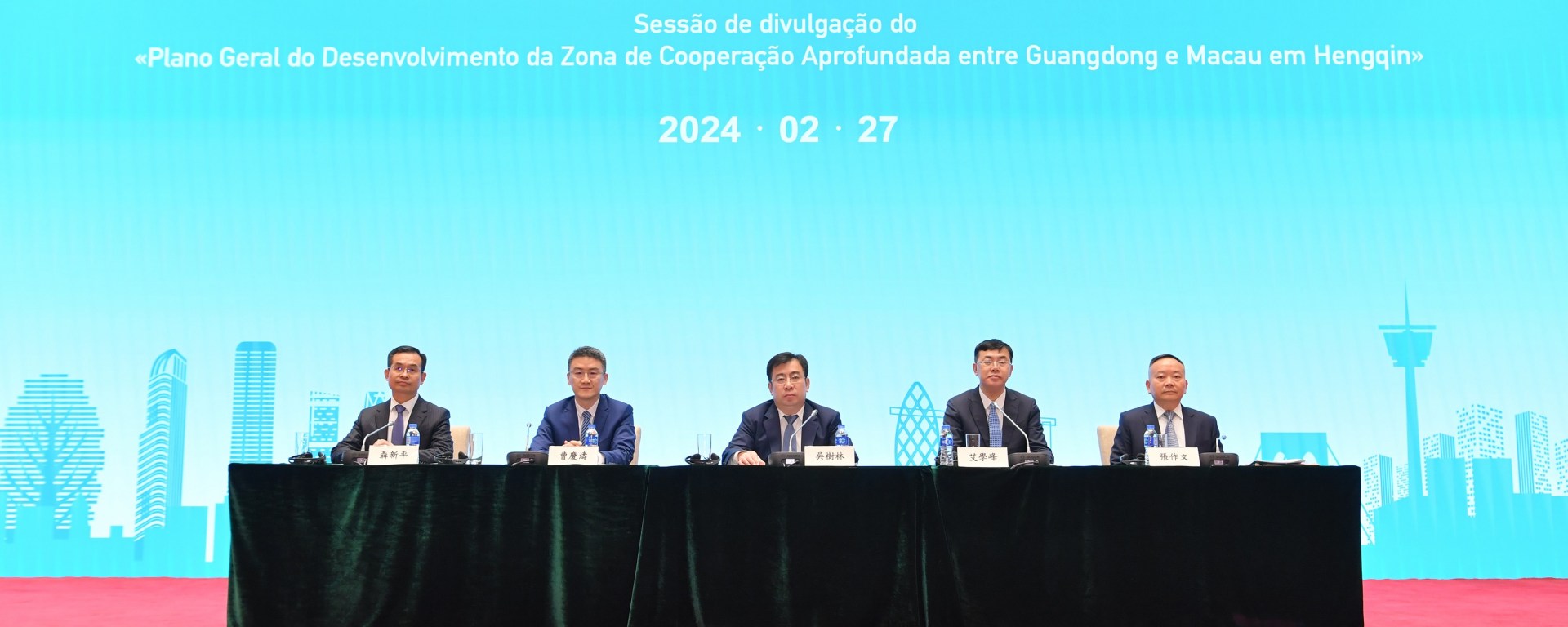 為凝聚粵澳共識、形成合力,更好推進橫琴粵澳深度合作區及粵港澳大灣區建設,根據中央區域協調發展領導小組部署,澳門特區政府政策研究和區域發展局2月27日下午在中國與葡語國家商貿合作服務平台綜合體舉辦《橫琴粵澳深度合作區總體發展規劃》(以下簡稱《橫琴規劃》)宣講會。國家發展改革委區域協調發展司司長吳樹林以「聚焦初心 深化合作 共同譜寫橫琴粵澳深度合作區建設新篇章」為題作專題宣講。行政法務司司長張永春,中央港澳辦三局副局長曹慶濤,廣東省發展改革委黨組書記、主任艾學峰,廣東省政府橫琴辦主任、橫琴粵澳深度合作區執委會副主任聶新平出席會議,政發局局長張作文主持會議。