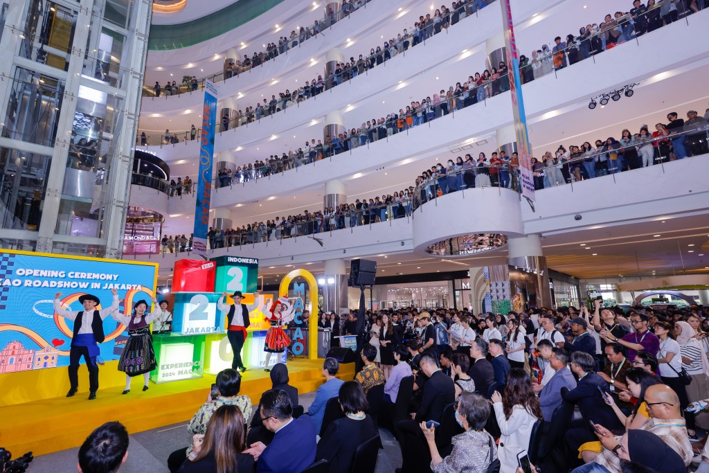 澳門旅遊局局長文綺華、印尼旅遊和創意經濟部台港澳旅遊市場推廣助理副主任 Annissa Noviarny及當地旅遊協會代表今在印尼雅加達中央公園購物中心(Central Park Mall)主持路展開幕儀式。橫琴粵澳深度合作區經濟發展局、澳門六大綜合度假休閒企業、澳門航空和澳門旅遊業界代表等出席活動,印尼旅遊業界、傳媒及居民亦參與其中。