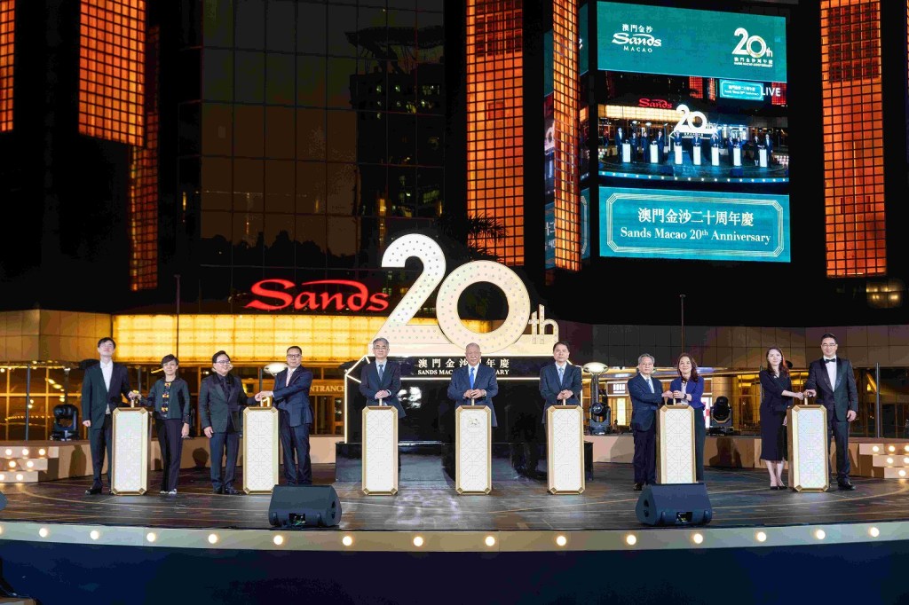 金沙中國有限公司日前於澳門金沙廣場噴泉區舉行盛大慶典活動,慶祝澳門金沙開業二十周年誌慶。澳門金沙於2004年5月18日在萬眾期待下隆重開幕,成為其母公司拉斯維加斯金沙在澳門開設的首家酒店及娛樂綜合體,開業時吸引眾多賓客爭相到訪,多年來與澳門共同成長、同心同行。