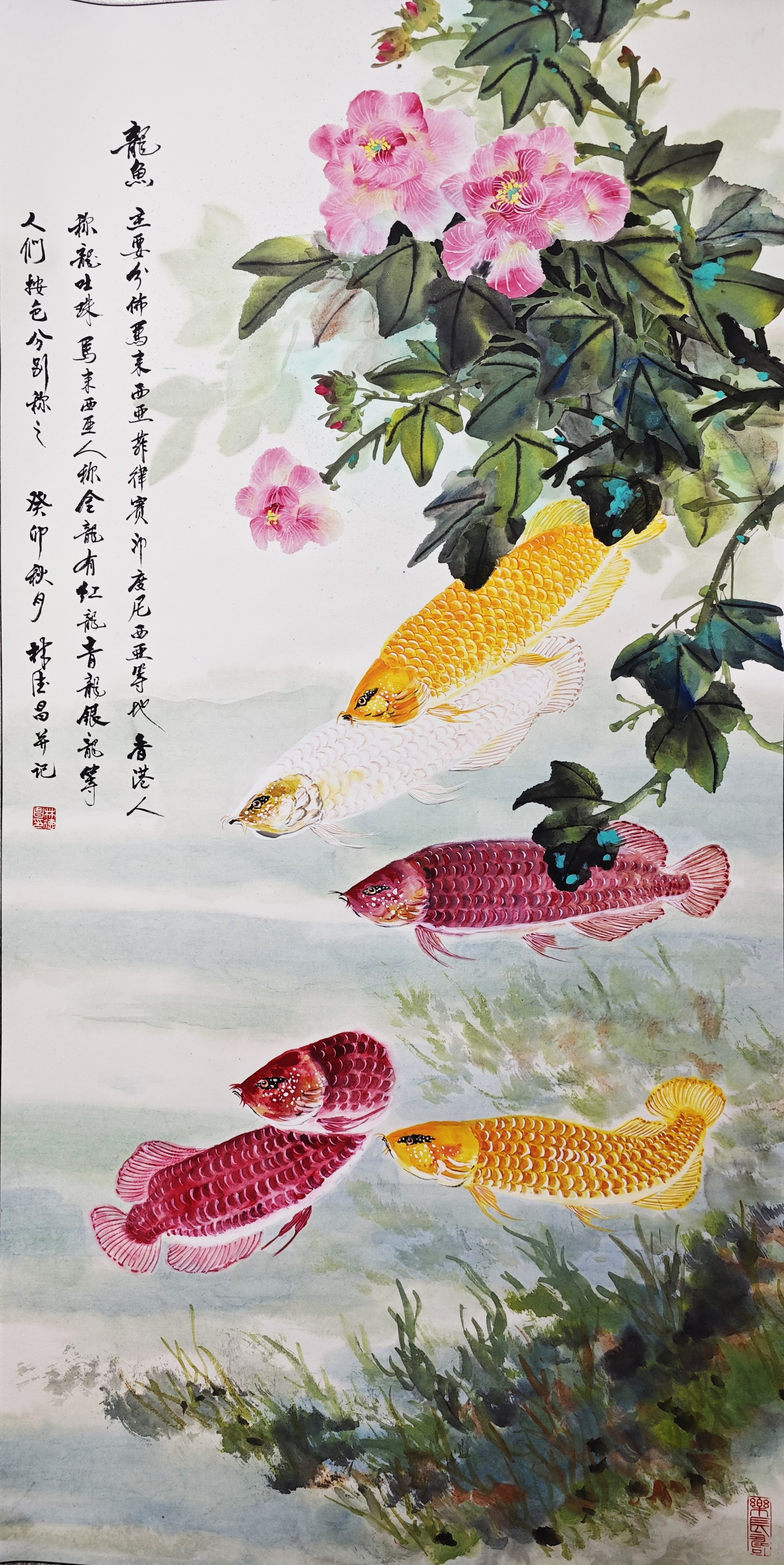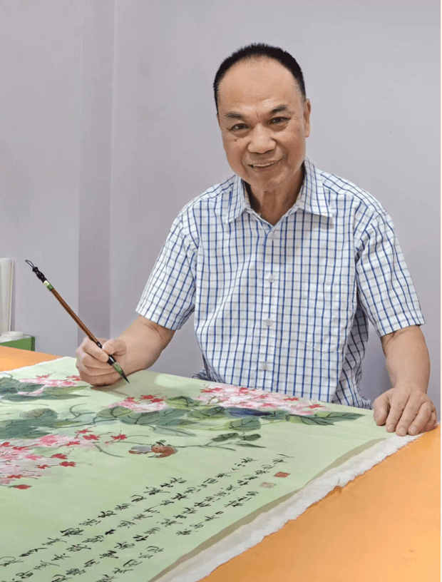 時光飛逝,由童年已變白髮翁,從小喜繪畫,隨意塗鴉,童年唯一的樂趣,父親常用毛筆寫字,鄉間春節前,街坊鄰里,都張貼「暉春」,父親代為書寫,非常忙碌,自己也在旁幫忙,父親偶也講解寫書法的方法,年紀小,耳邊風。六十年代,告別家鄉,移居澳門,工餘也不忘自學書畫,總覺得不是味兒,有幸能隨嶺南派畫家關萬里老師習畫,後隨周雲師傅多方指導,已三十餘年,師傅對繪畫態度嚴謹,茅塞頓開,不單是繪畫,對文化素養,道德修為和藝術功夫都要追求提高。現己是耋耄之年,應成教中心和商訓夜中學之邀,成長者國畫班導師,已十多年矣。今次舉辦《鳥集鱗萃》畫展,內容描畫鳥類及魚類,由於自己水平局限,請前輩及同道多多指教。