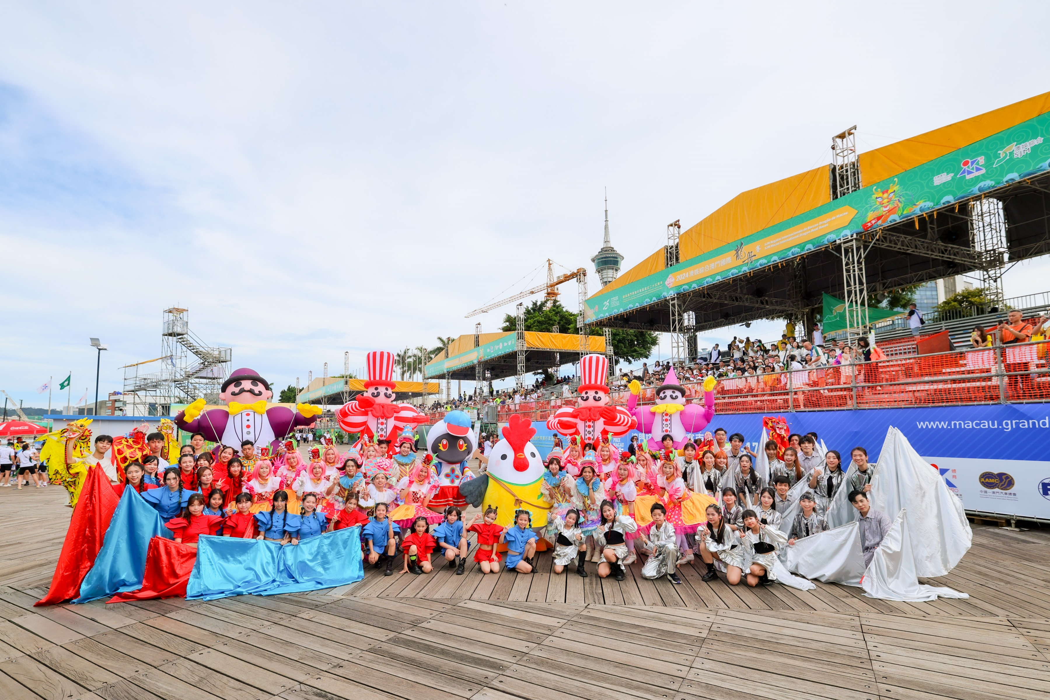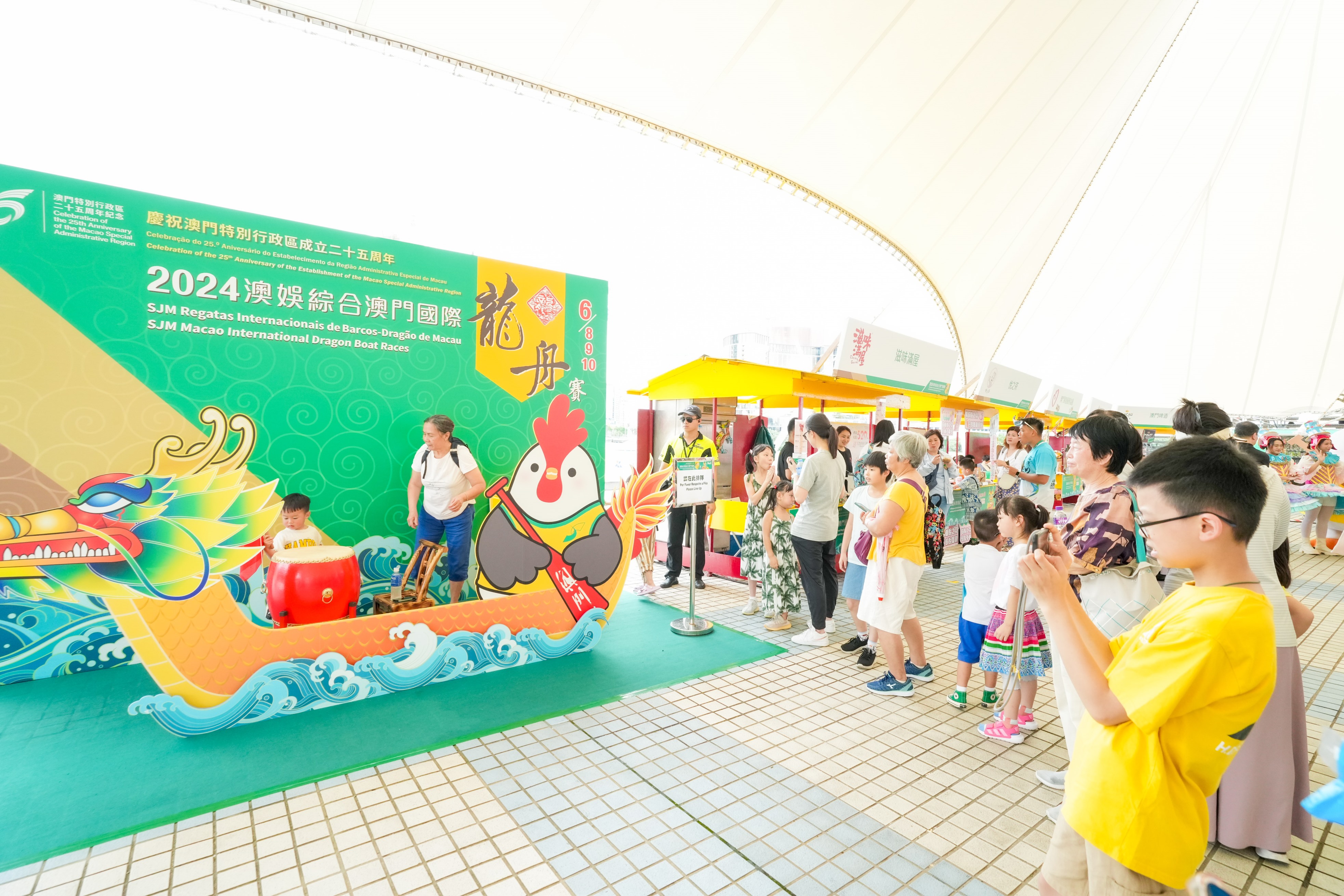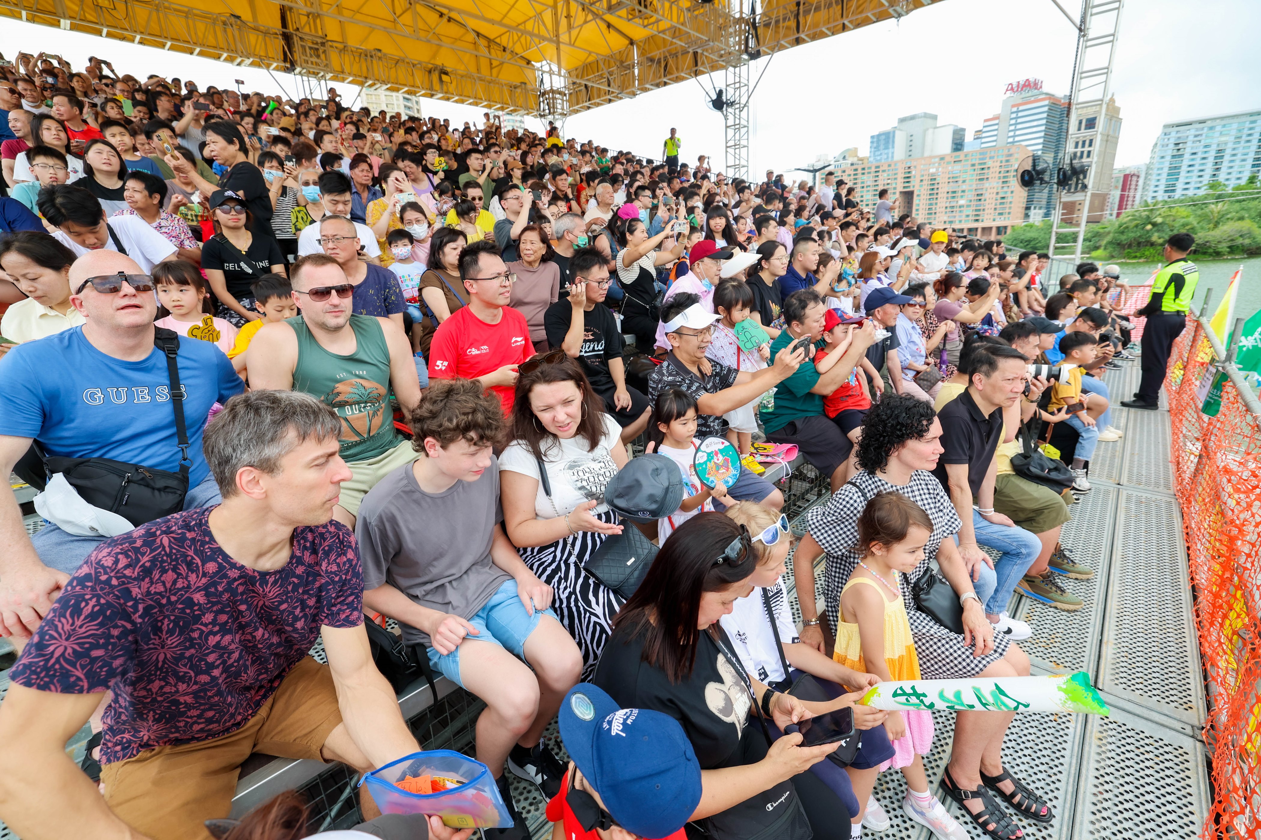 活動今年邀請了文化藝術團體於賽事舉行期間進行巡遊表演,而比賽場地南灣湖水上活動中心以及毗鄰的南灣.雅文湖畔亦舉行了「2024澳娛綜合澳門國際龍舟賽嘉年華」,現場設有多個本地文創產品、特色小食餐飲、主題拍照區、趣味遊戲和工作坊等攤位,以及互動魔術、扭氣球、街頭音樂表演等活動,吸引大批市民及旅客到場觀賞龍舟競渡,感受節日氣氛,共同打造澳門獨有的體育品牌活動。