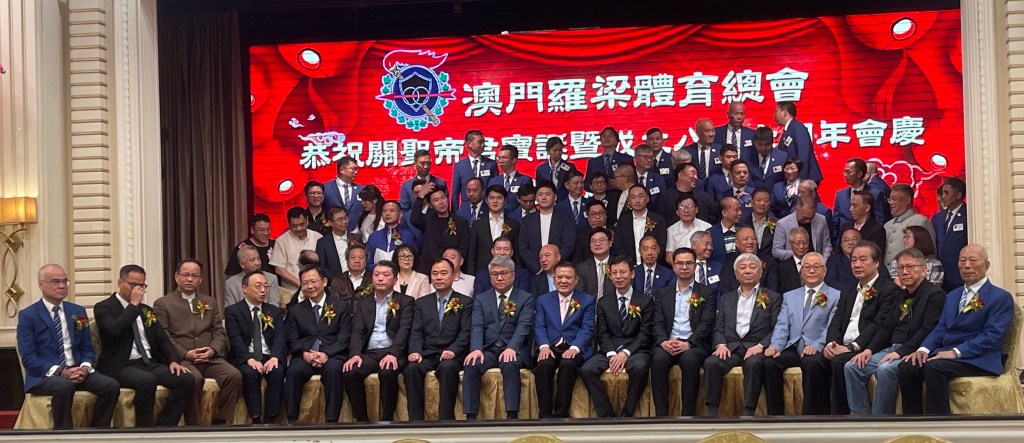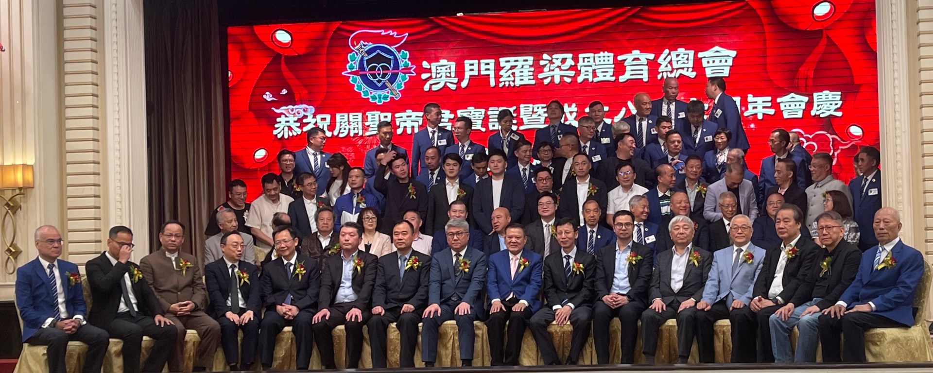 澳門羅梁體育總會日前在萬豪軒舉行「恭祝關聖帝君寶誕暨成立八十六周年聯歡宴會」,體育局潘永權局長、中聯辦宣文部殷汝濤副部長、澳區全國人大代表何敬麟、教青局陳旭偉廳長、旅遊局陳志輝處長,以及澳區全國政協陳錦鳴、梁少培、陳華強等出席主禮。並與各界嘉賓、社會賢達及會員歡聚一堂,場面熱鬧。