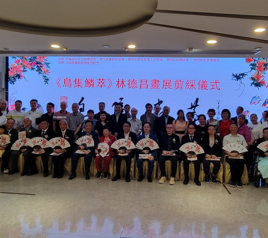 由樂報經濟文化會主辦,中葡語言文化推廣協會、澳門持續教育協會、澳門大灣區港澳人才智庫、澳門新媒體協會、澳門青年音樂協會協辦,中國書畫研創學會(澳門)承辦,大眾報、捷報、樂報支持的「鳥集鱗萃—林德昌畫展」於六月八日下午三時在萬豪軒酒家地下大堂舉行開幕儀式,並同時發行《鳥集鱗萃》畫冊。