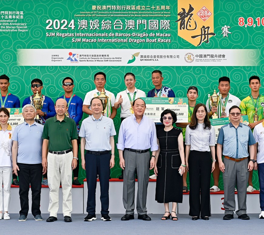 由體育局、澳娛綜合度假股份有限公司、中國澳門龍舟總會主辦,市政署及行政公職局協辦的「慶祝澳門特別行政區成立25周年-2024澳娛綜合澳門國際龍舟賽」於6月10日端午節正日於南灣湖水上活動中心進行壓軸的賽事。最終中國南海九江分別衛冕澳門國際龍舟邀請賽標準龍500米公開組及女子組冠軍,而大學生邀請賽標準龍500米公開組由聊城大學奪得。行政長官賀一誠出席活動觀賞龍舟賽事,並主持點睛儀式及頒獎。