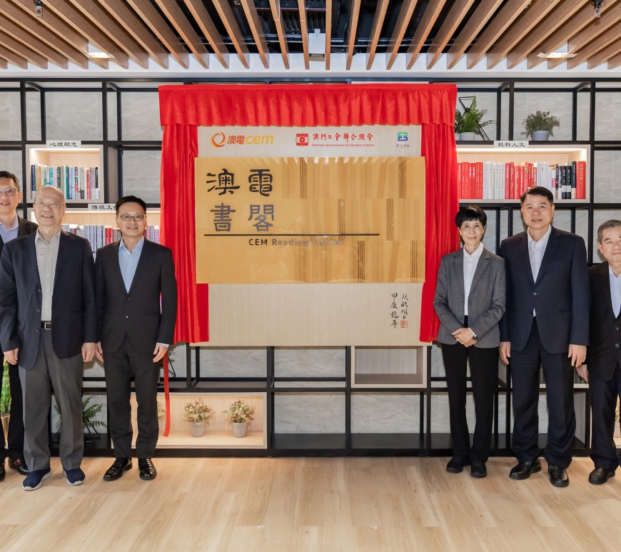 由澳門電力股份有限公司(澳電)及澳門工會聯合總會(工聯總會)共同開展的「澳電書閣」日前假澳電大樓13樓員工餐廳舉行揭幕儀式,出席活動的主禮嘉賓包括中央人民政府駐澳門特別行政區聯絡辦公室副秘書長兼社工部部長黃華蓋、工聯總會會長何雪卿及理事長李從正、澳電董事會成員林香生、澳電執行委員會主席梁華權及執行董事張健。