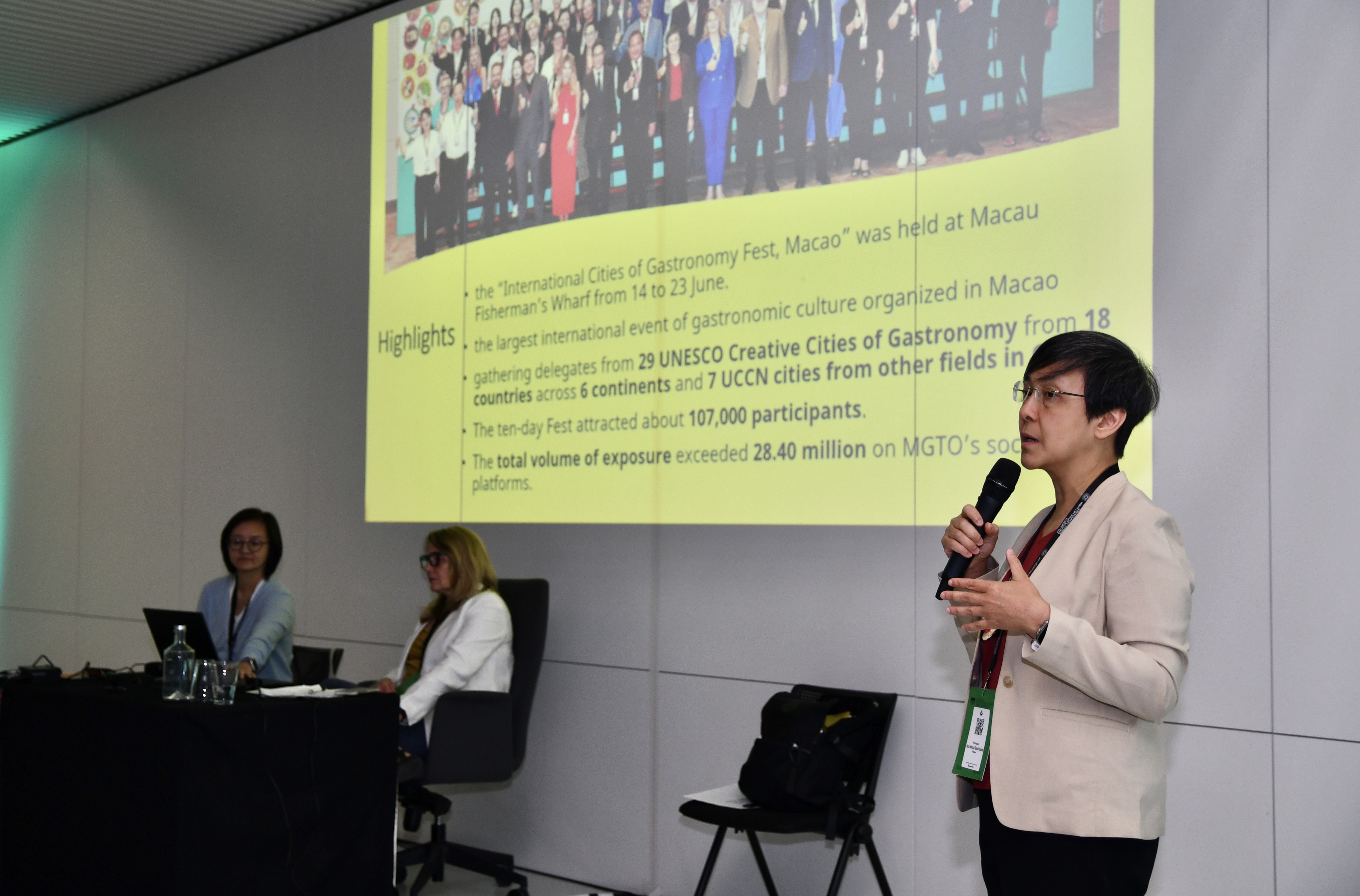 澳門旅遊局局長分享舉辦首屆「澳門國際美食之都嘉年華」的經驗和豐碩成果。這項澳門歷年最大型的國際美食文化盛事,在6月匯聚來自六大洲共29個「創意城市美食之都」的代表和廚師參與,為網絡提供交流平台,助力實踐網絡目標。文綺華並邀請各美食之都參加明年的國際美食之都嘉年華。
