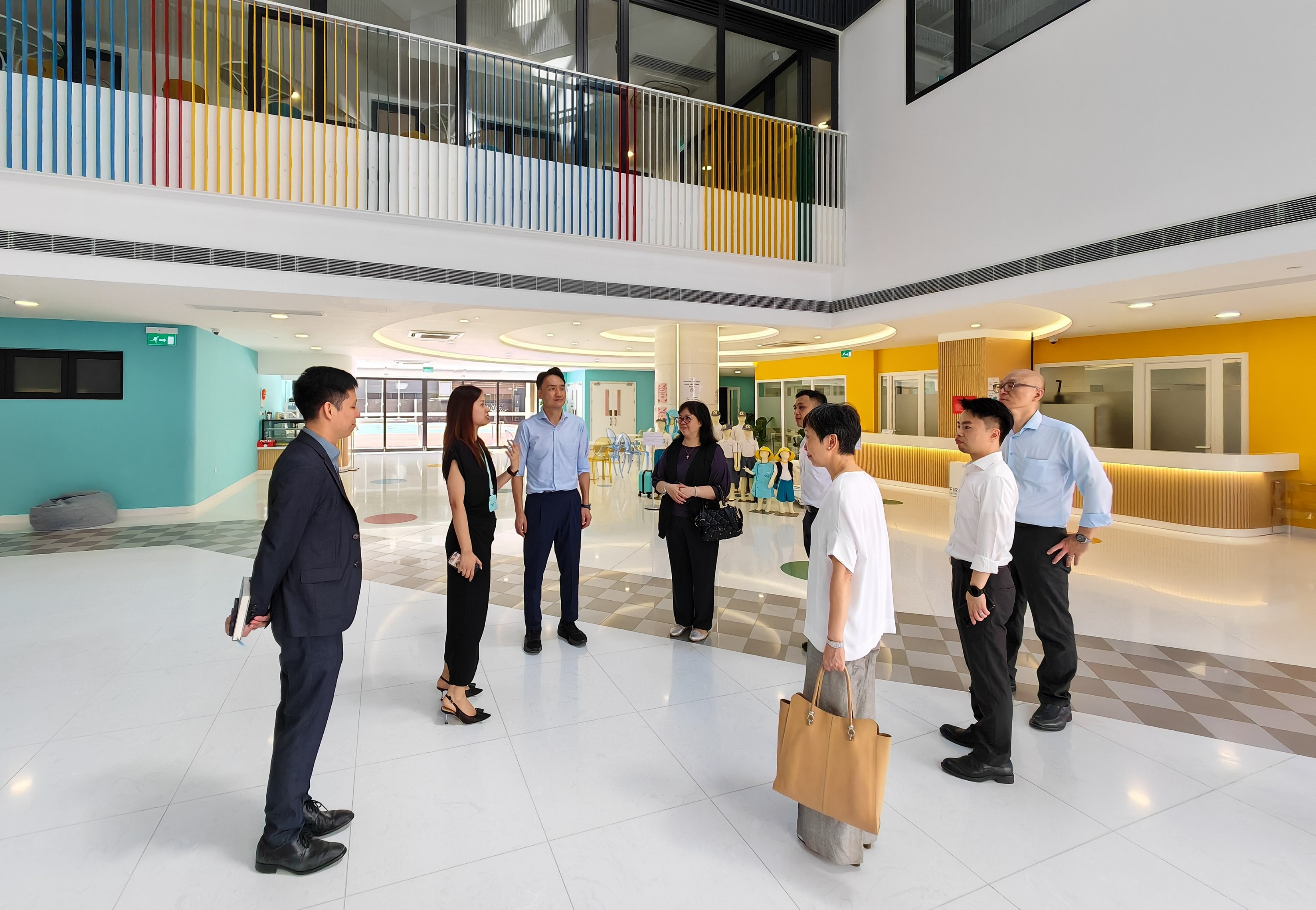 委員會一行首先視察濠江中學附屬橫琴學校(澳人子女學校),陳虹執行校長感謝特區政府對學校教學大樓及教學設施設備的支持,並介紹該校作為橫琴粵澳深度合作區第一所澳人子弟學校,將於2024/2025學校年度開辦幼兒一年級至小學二年級共8個班,是一所具有澳門課程特色、學歷與澳門等同的澳人子弟學校,澳門學生享有趨同於澳門免費教育待遇。其後,到訪培正中學(路環校部),高錦輝校長介紹受教育基金資助的校舍工程及各項教學設施設備的情況,以及表示學校的教師團隊在課程及硬件設備配置上已做好周全準備。最後,委員會到訪傳承國際學校,劉祖兒代校長介紹了該校的課程設計特點,以及為學生提供多語言的國際化教育。
