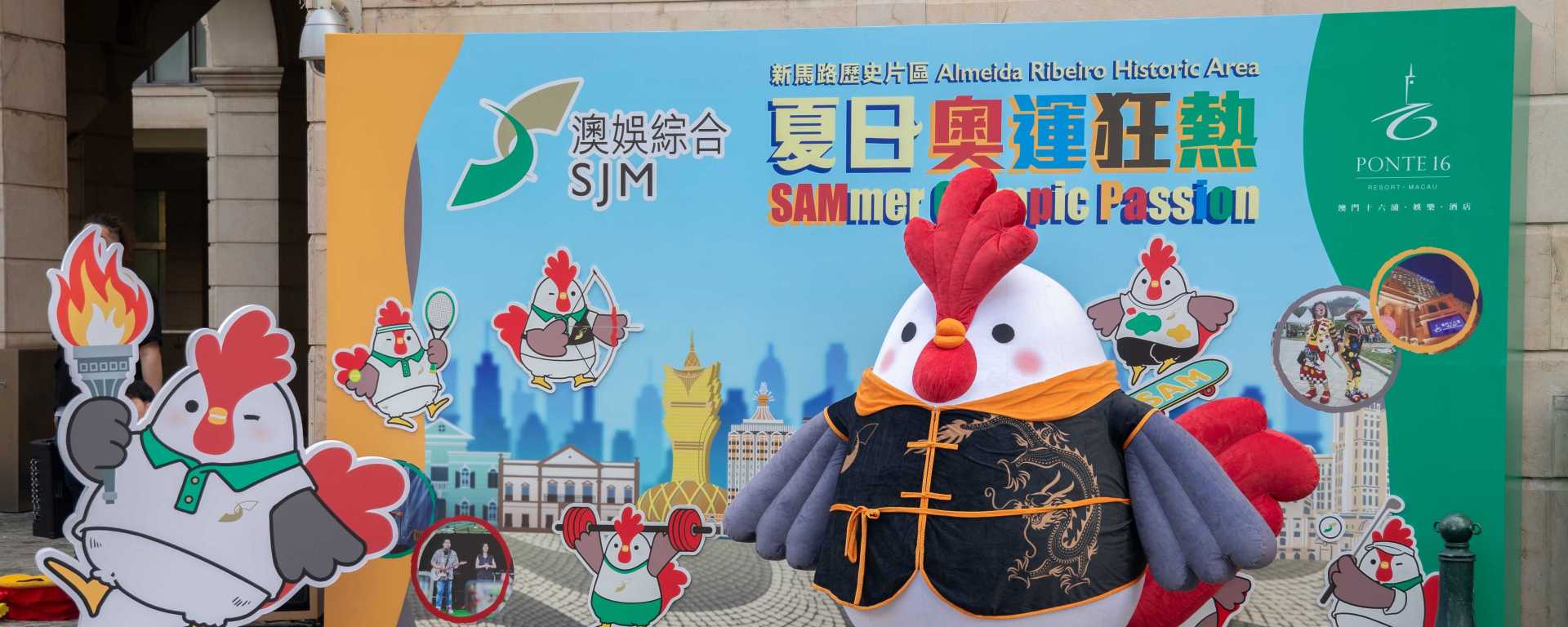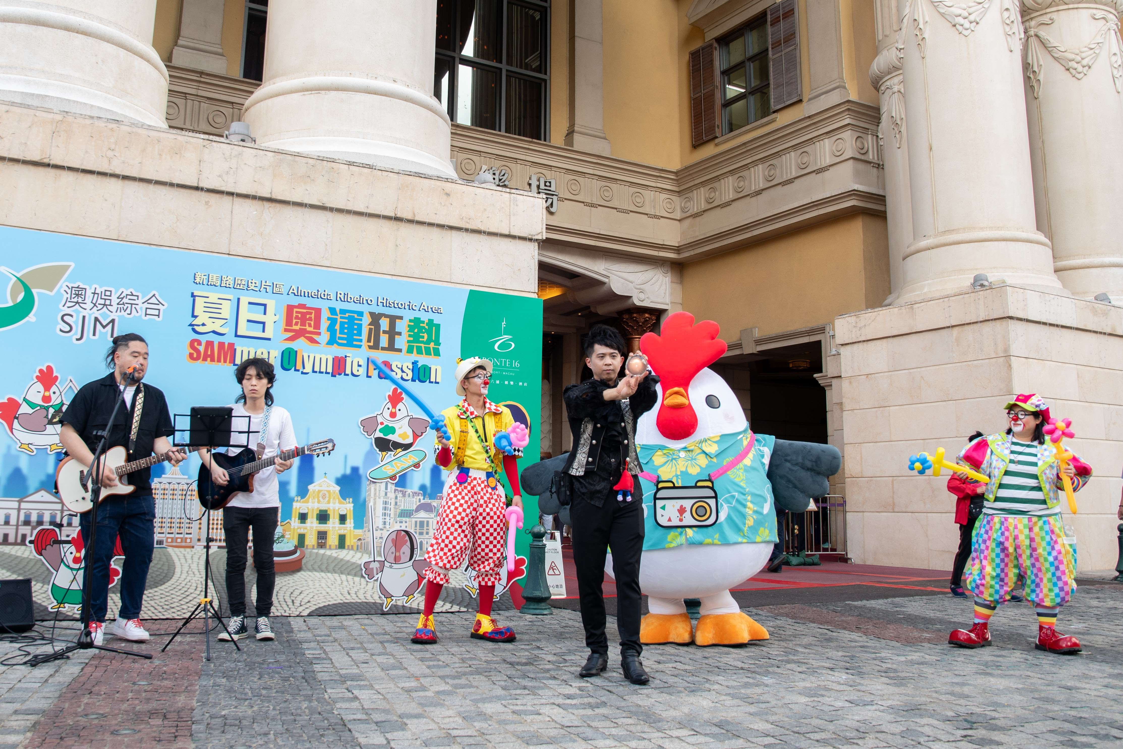 由即日起至8月18日,每個周六及周日下午2時至7時,十六浦的戶外廣場將不定時上演多場樂隊表演、扭氣球以及魔術表演。「森仔」會以夏日主題及不同奧運項目的造型與市民和旅客見面,聯同澳娛綜合團隊一起派發「揭開『京』喜」刮刮卡及糖果,為大眾送上奧運嘉年華的熱鬧氣氛。而為即將在9月舉行的「2024澳娛綜合第十屆亞洲武術錦標賽」造勢,澳娛綜合更將聯同澳門武術總會於8月10日在十六浦戶外廣場準備一場精彩的武術集體匯演。